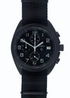 MWC Mechanical/Quartz Hybrid NATO Pattern Military Pilots Chronograph in Non Reflective Black PVD Finish