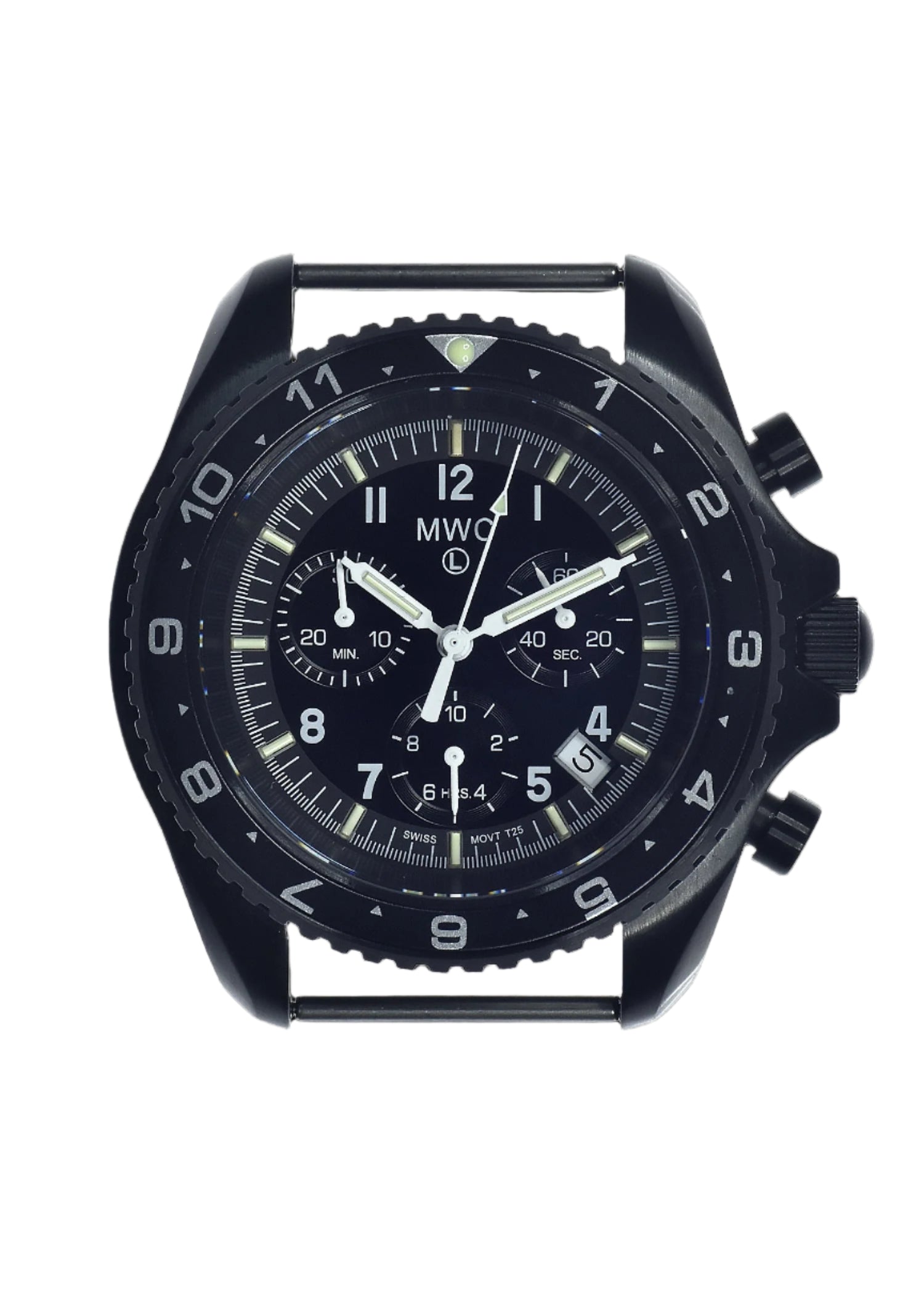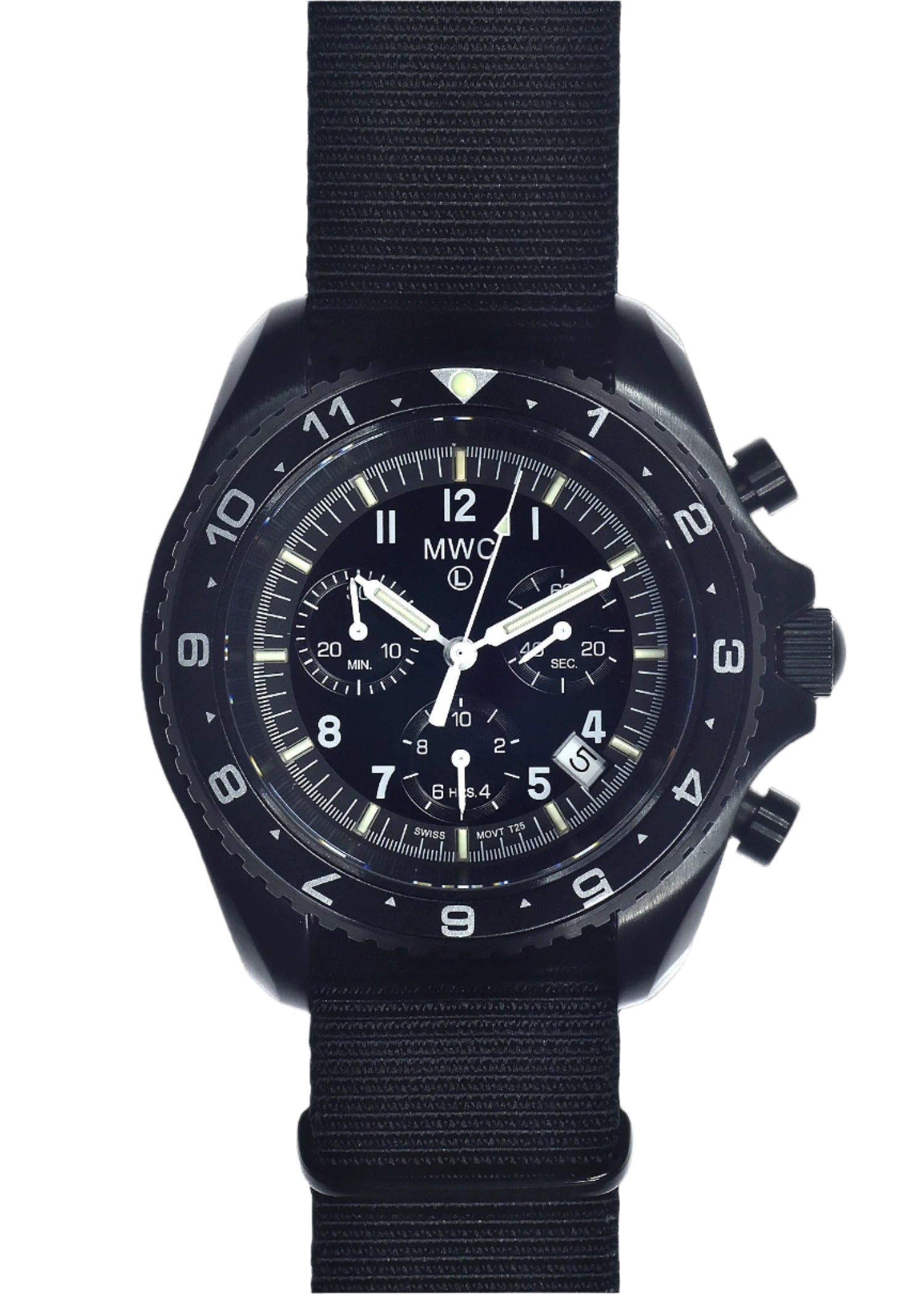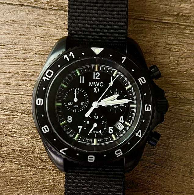 MWC NATO Pattern Black PVD Steel Military Pilots Chronograph with Sapphire Crystal and Swiss Ronda Movement- 12 Hour GMT Bezel and GTLS/Tritium Illumination - Ex Display Watch Reduced