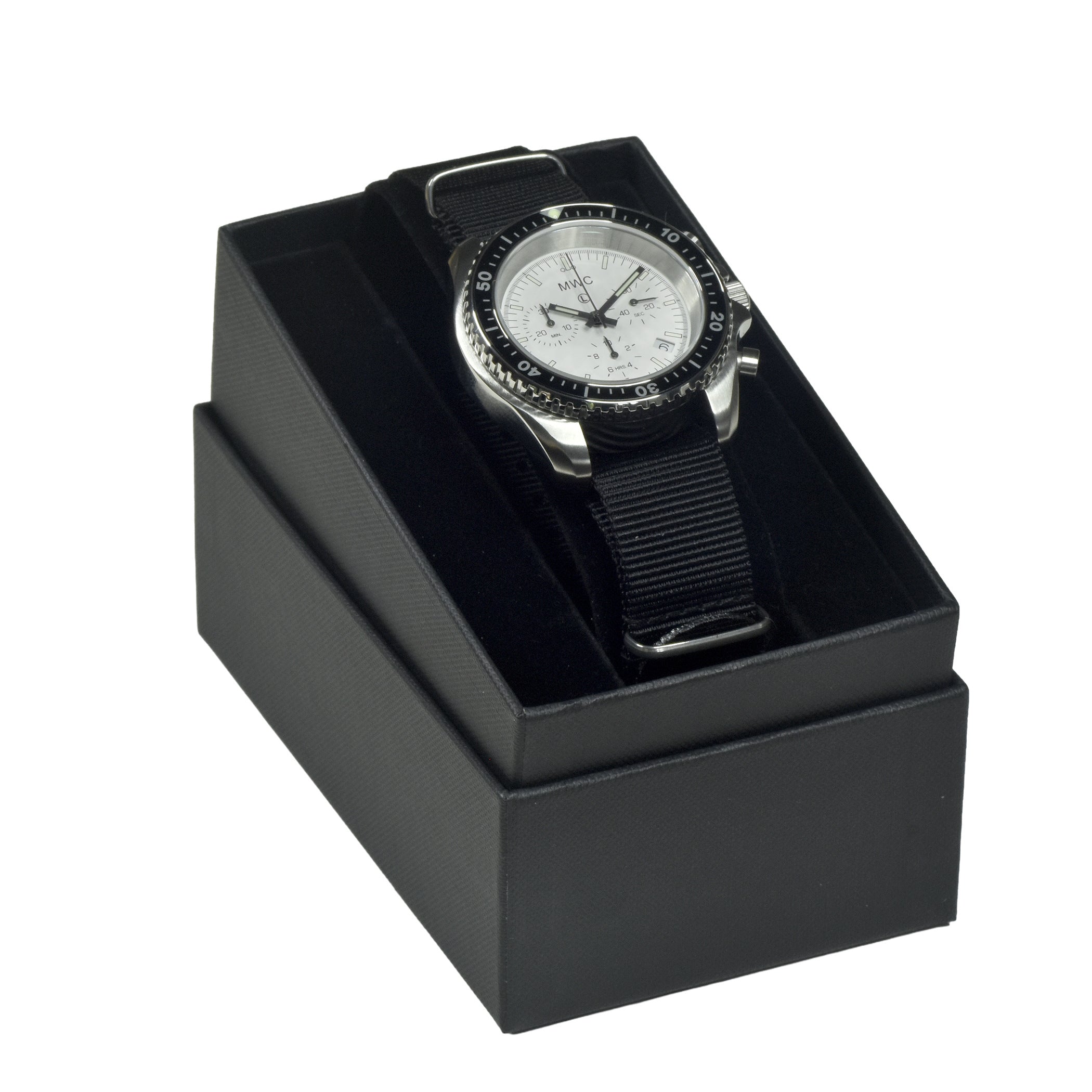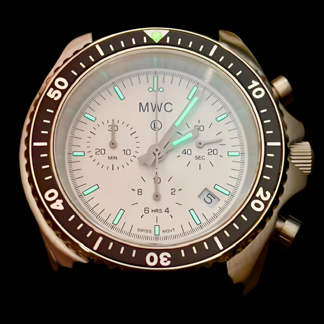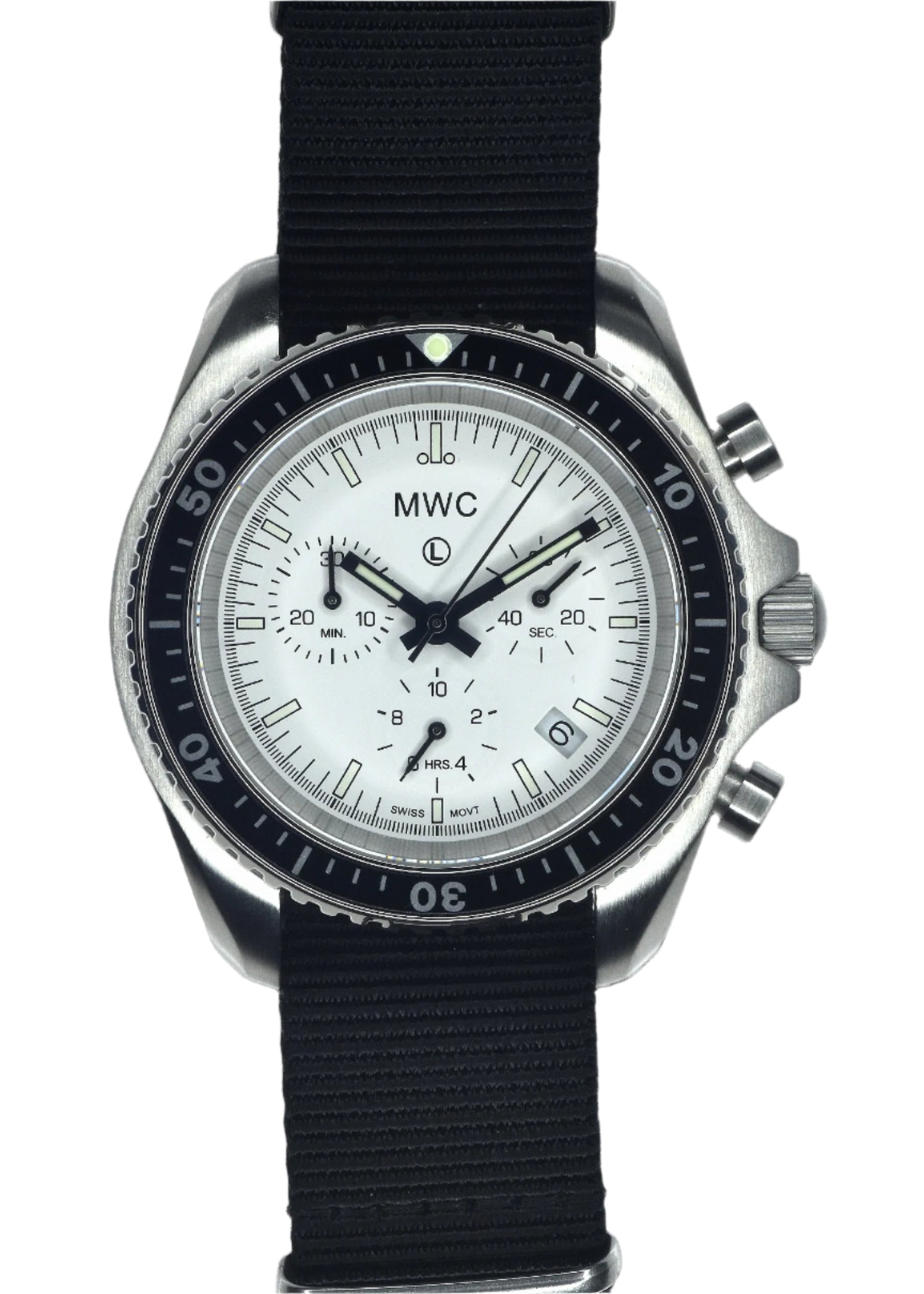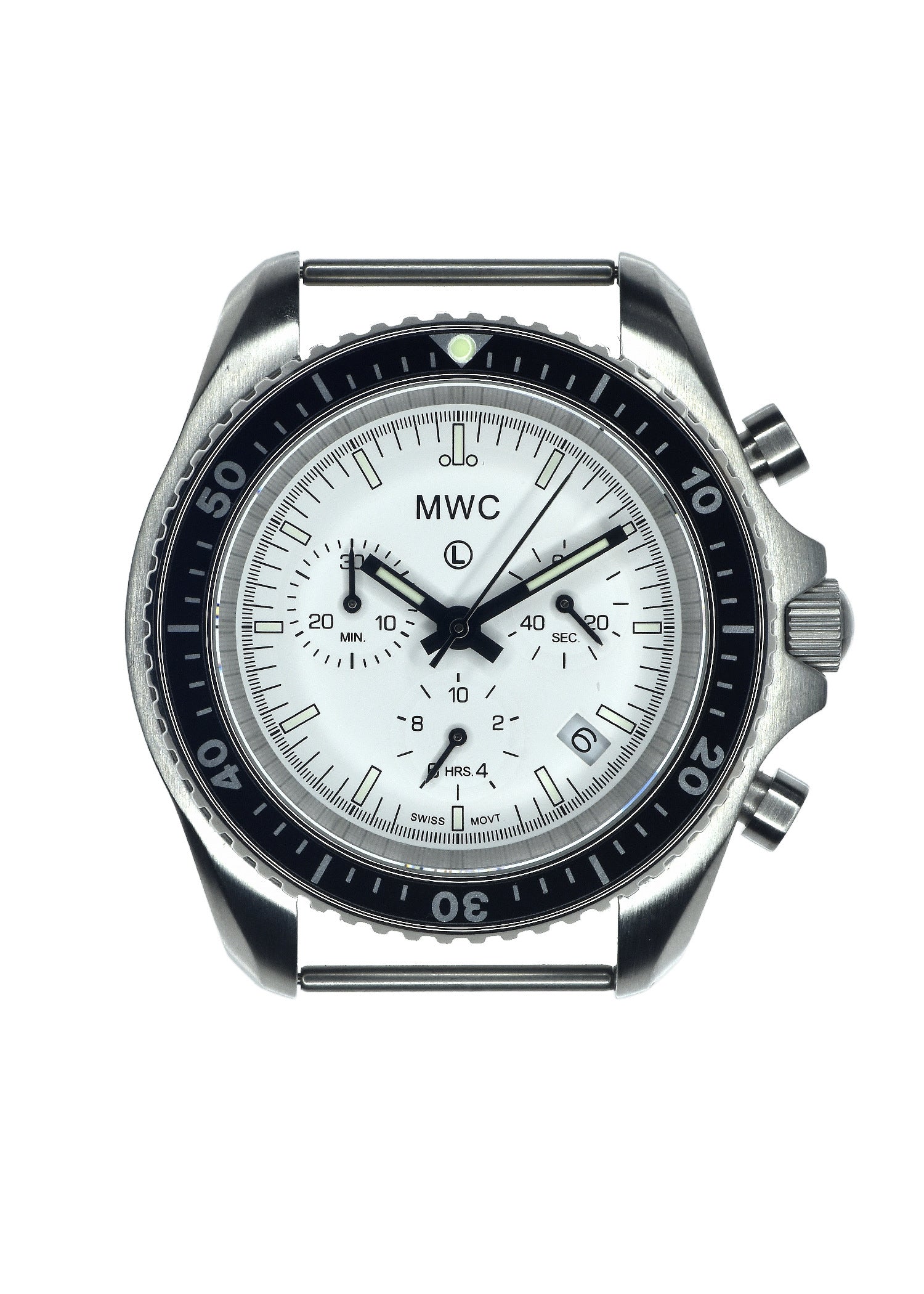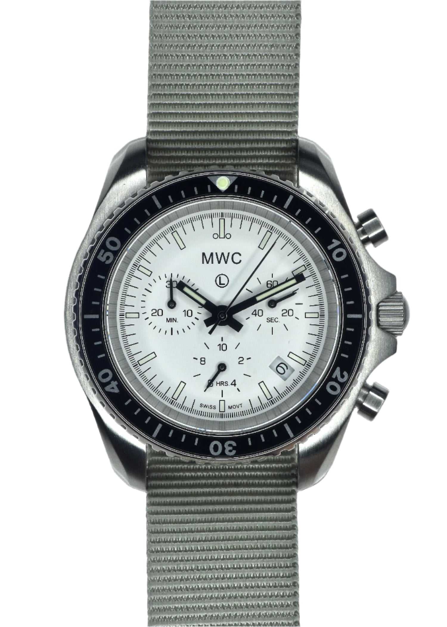 The MWC NATO chronograph in stainless steel combines modern technology's reliability and precision with the rugged design and functionality needed for professional use. Its robust features and user-friendly design make it an exceptional choice for both professionals and enthusiasts.
