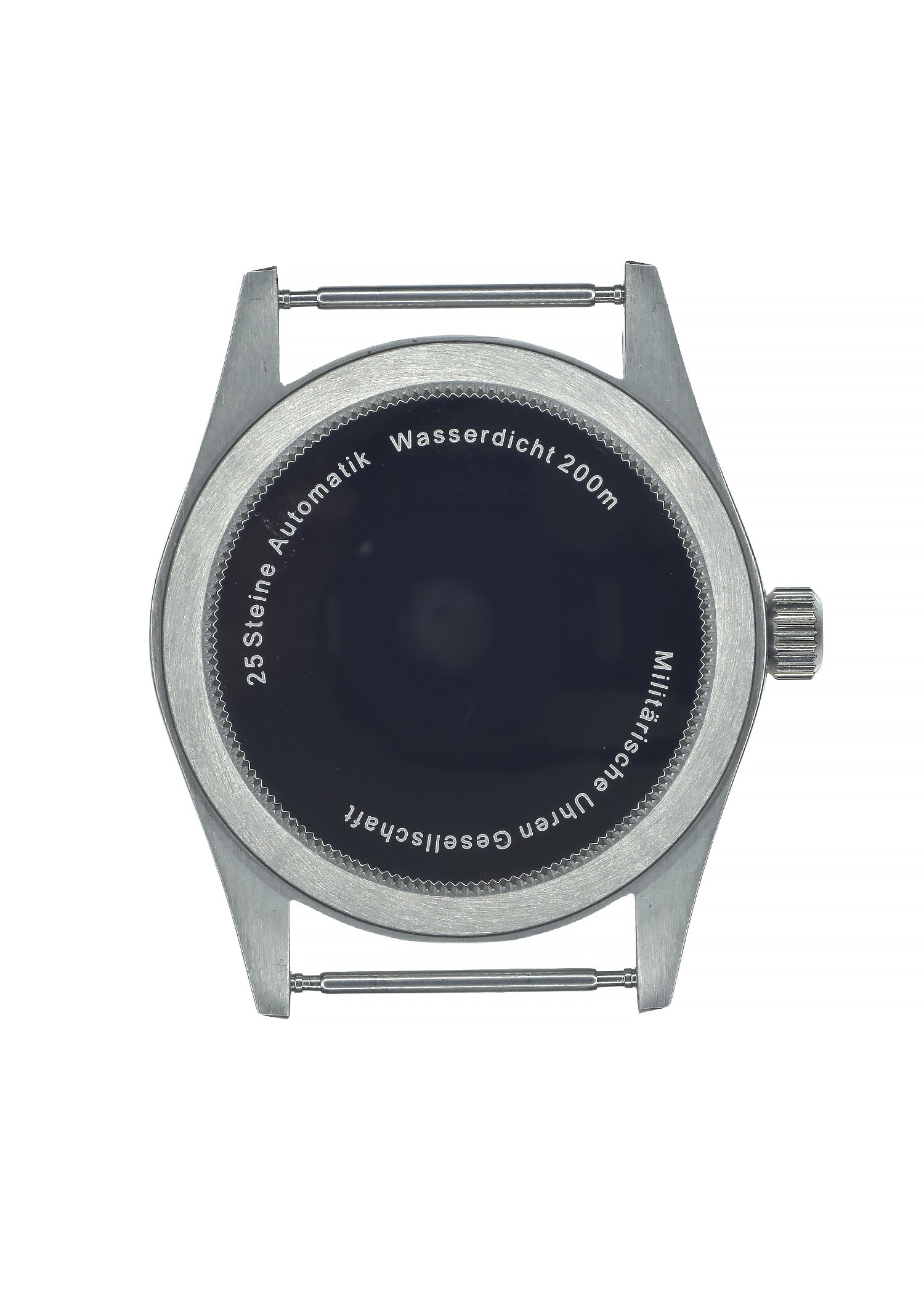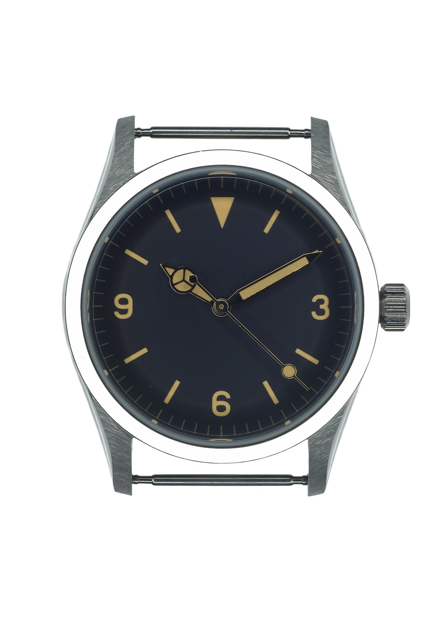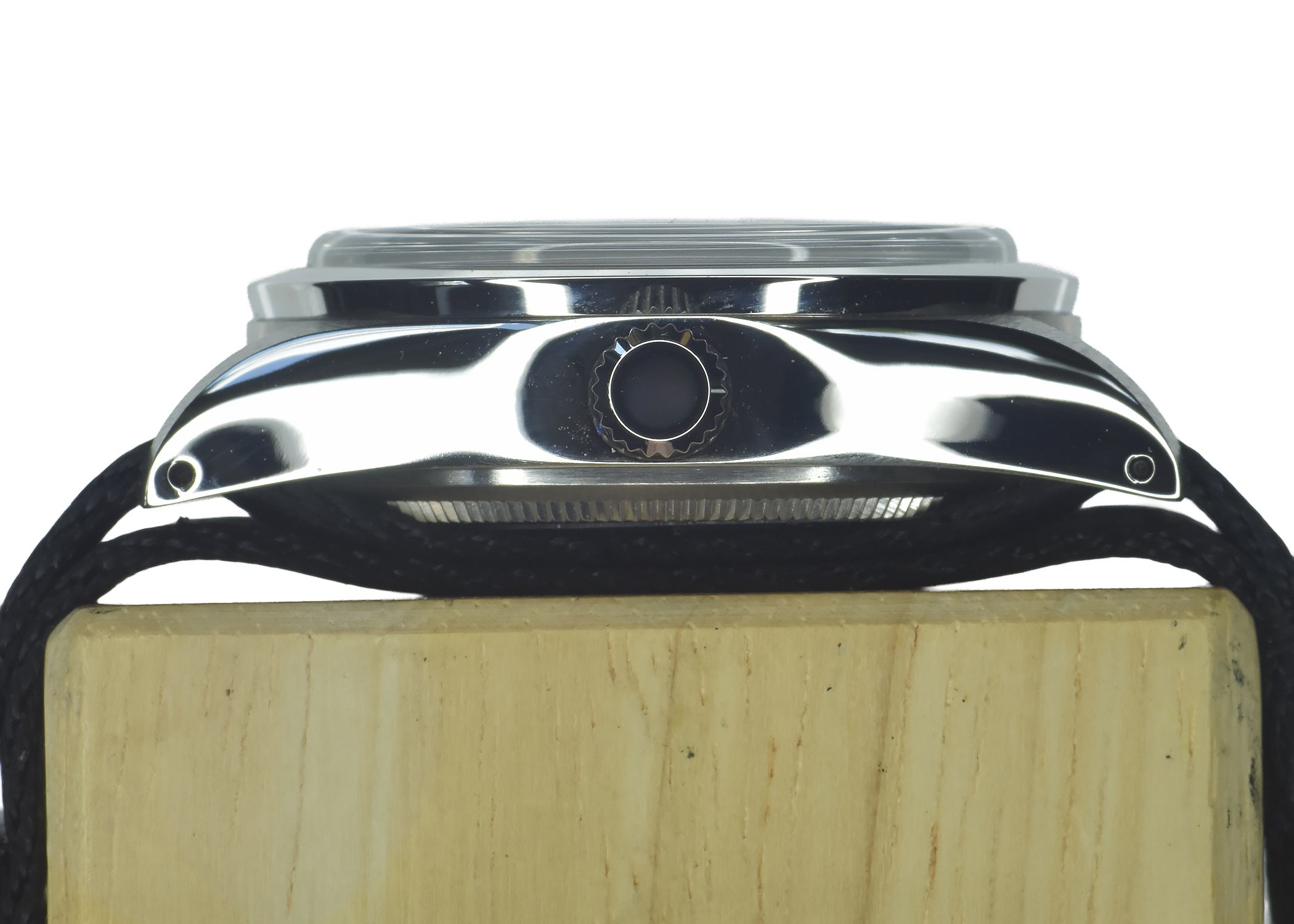 This watch is based on a 1950s/1960s pattern exploration and adventurer watch. It features a box sapphire crystal that looks identical to the original plexiglass crystal. The movement is a Ronda R 150 or equivalent, a sophisticated 25-jewel automatic mechanism with an impressive frequency of 28,800 vibrations per hour (4Hz). This precision-crafted powerhouse boasts a substantial 38-hour power reserve, ensuring enduring performance. It is also equipped with hacking and hand-winding capabilities, exemplifying both efficiency and convenience.