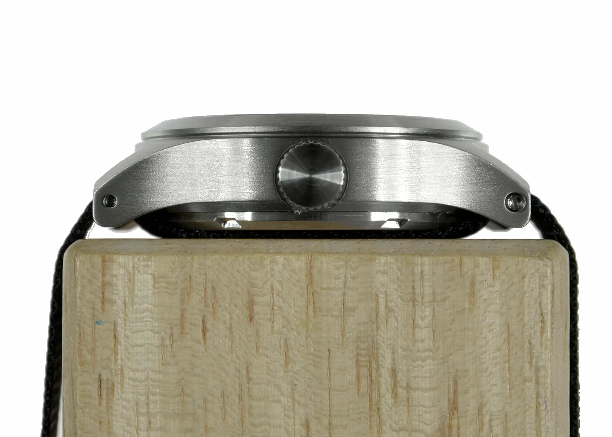 While it retains the authentic outward appearance of a 1960s/70s military watch, this model includes several discreet upgrades for improved everyday usability—including 100m water resistance, a hardened mineral glass crystal, and a robust 316L stainless steel case. The automatic 24-jewel movement also allows for manual winding if desired.