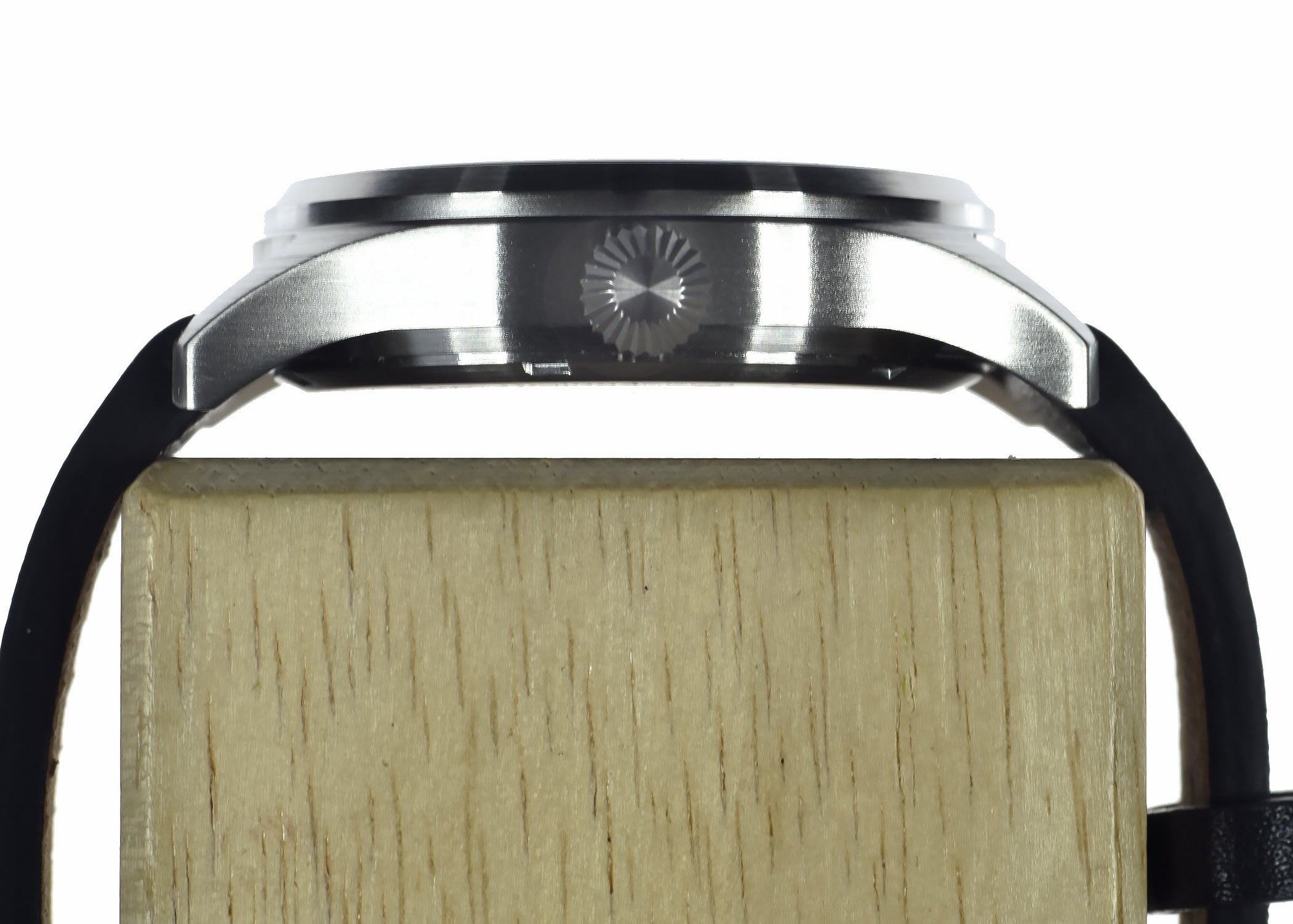 - Band: 20mm Black Leather Strap