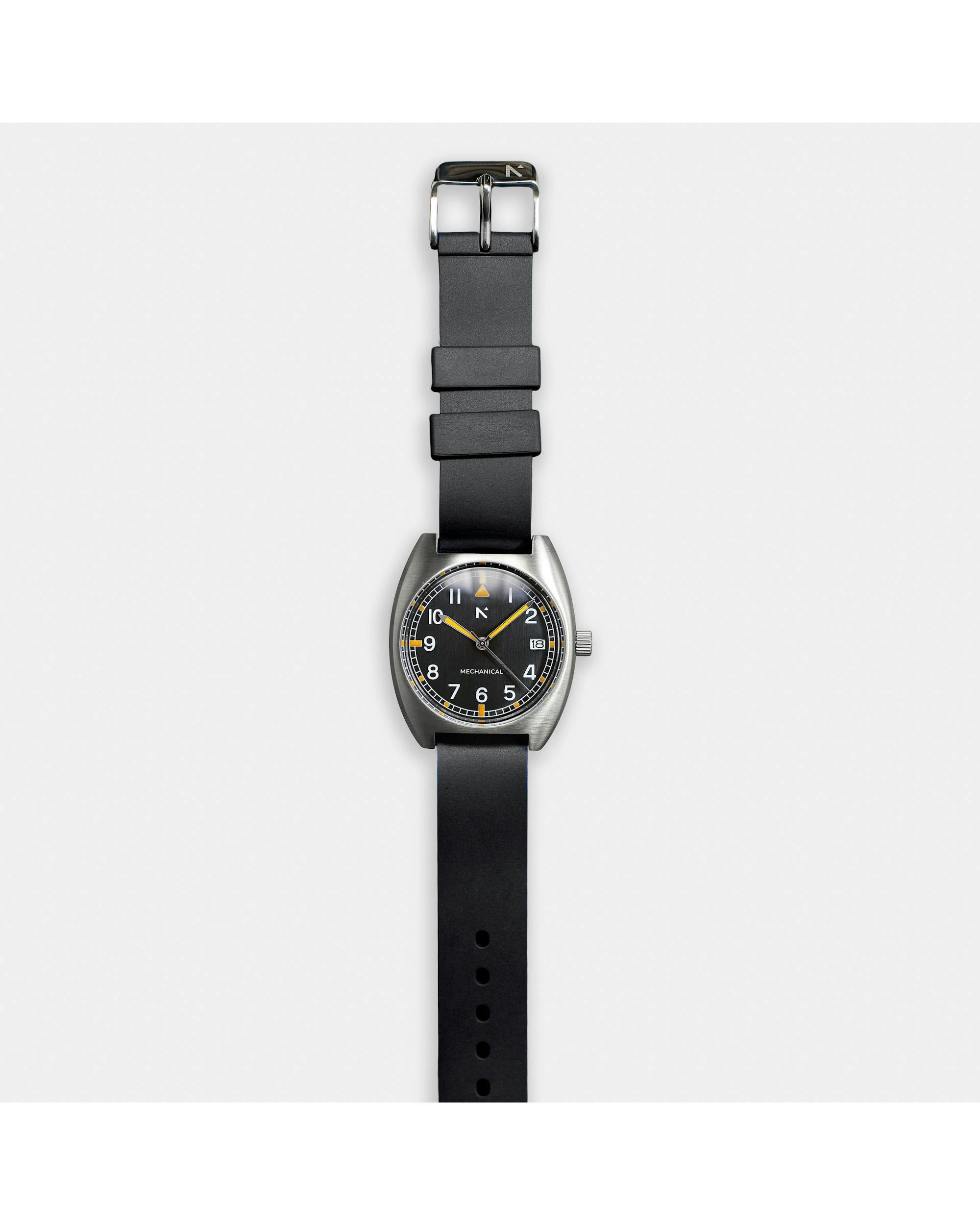 The Rotate North W10 Automatic is a rare, limited-edition modern interpretation of the classic 1960s/70s British military W10 watch. While retaining the timeless military styling, this version introduces modern reliability and performance with 100m water resistance, a screw-down crown, and the robust Seiko NH35A automatic movement.