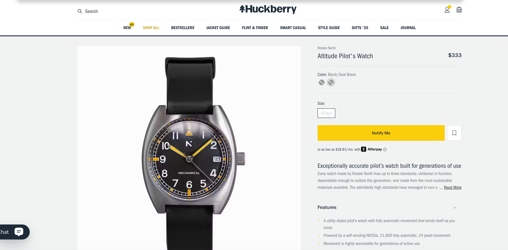 We recently received a shipment of ex-display watches from the SHOT Show in Las Vegas (USA). All of the watches were brand new, though they had been displayed in a cabinet for the duration of the show. Among the various brands included, there was one watch that initially couldn’t be identified. After some research, we discovered it was a Rotate North Limited Edition W10 Automatic, originally sold by Huckberry (see final image) for $330 / £249 / €285.