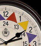 This design is based on the original “colour change clocks” used by the Royal Flying Corps (RFC)—the forerunner of the RAF—first introduced in 1917 during the First World War. These clocks played a crucial role in monitoring enemy aircraft and airships. Their use evolved further during World War II, most notably in the Battle of Britain, and many remained in service on airbases well into the Cold War.