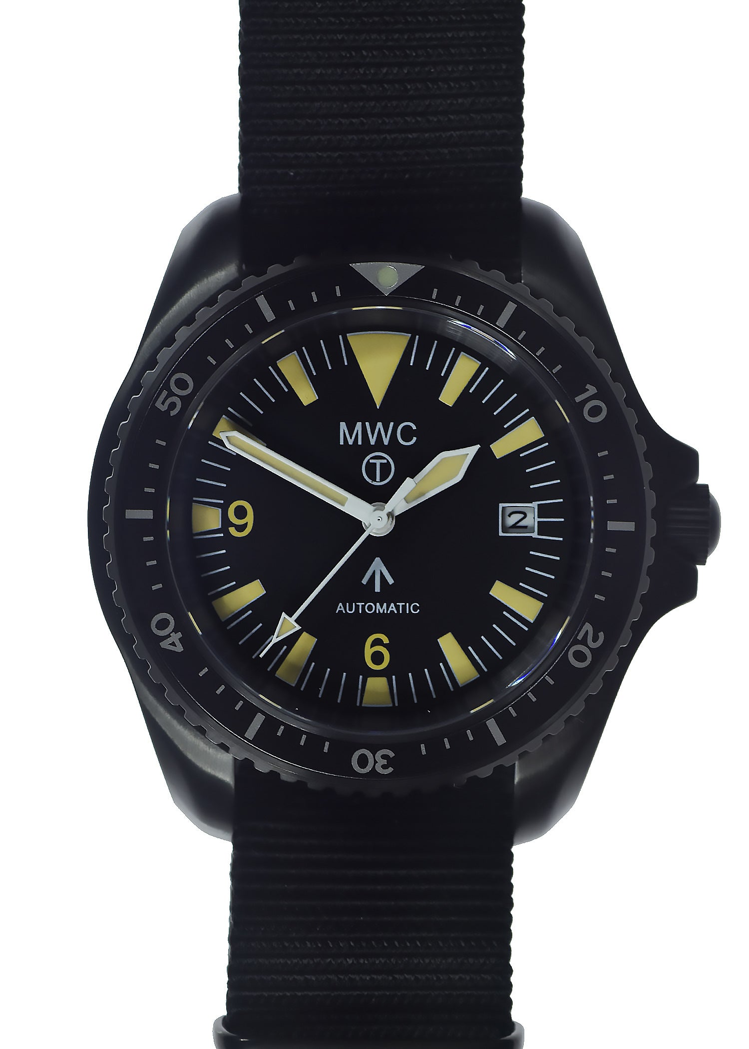 MWC first manufactured the predecessor to this 300m/1000ft water resistant divers watch between the early 1990s and 2004, although some of the fine details such as the dial design changed over that period aesthetically the 1999-2001 pattern dial remains the clear winner due to the easily readable uncluttered layout and first rate night time performance,  this watch retains that original dial pattern with retro luminous paint which looks identical to our watches 30 years ago, although the original watches used tritium these new versions use Luminova but the encircled T has been retained for historical reasons.