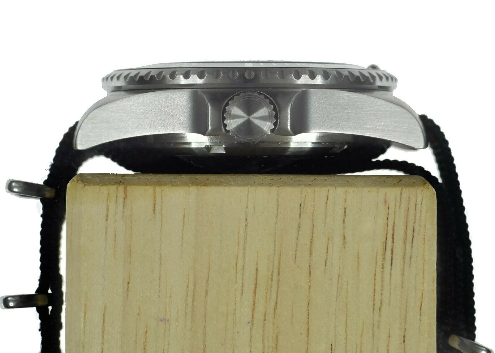 This watch is slightly larger than some other military divers watch at 45mm including the crown and 40mm excluding the crown which gives a noticeable degree of improvement in visibility.