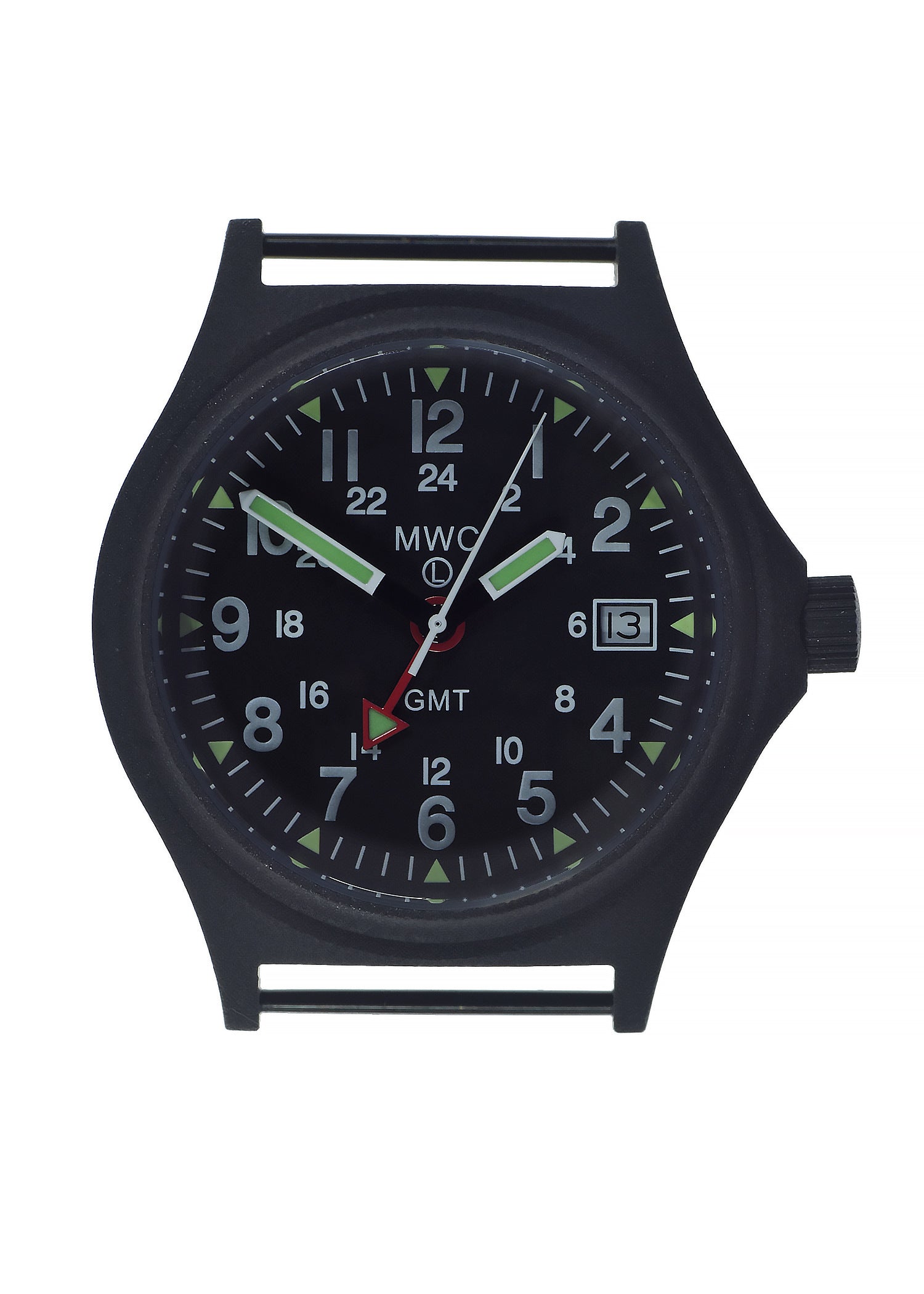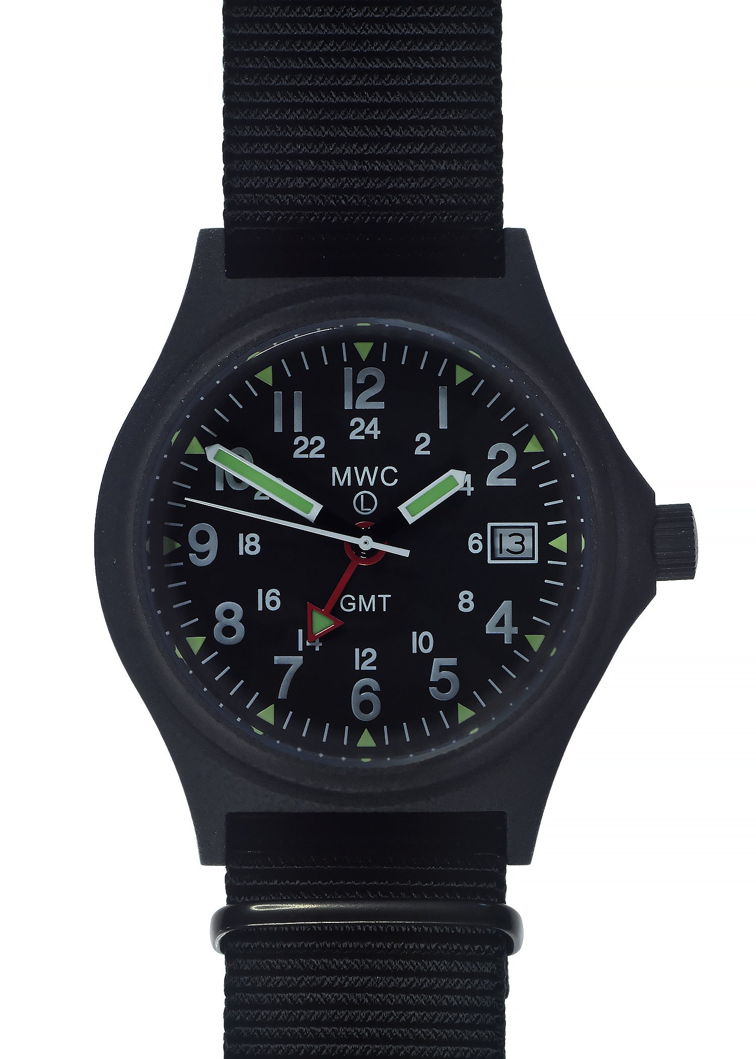 MWC GMT (Dual Time Zone) 100m/330ft Water resistant Military Watch in Black PVD Steel Case with Screw Crown