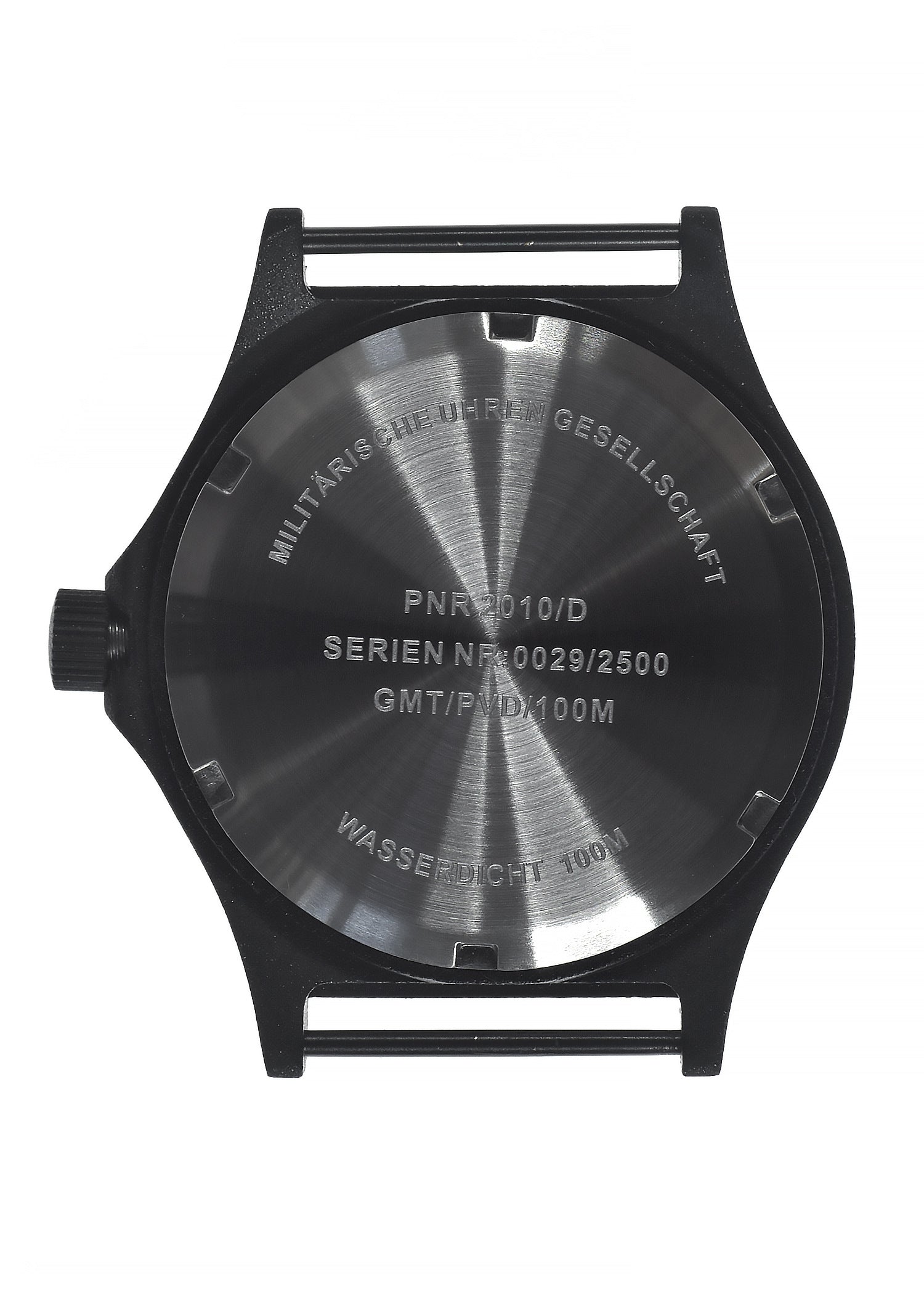 This GMT watch is a variant of the 100m G10 general service watches, designed to endure extreme conditions. The back of the case features various contract markings and a unique serial number.