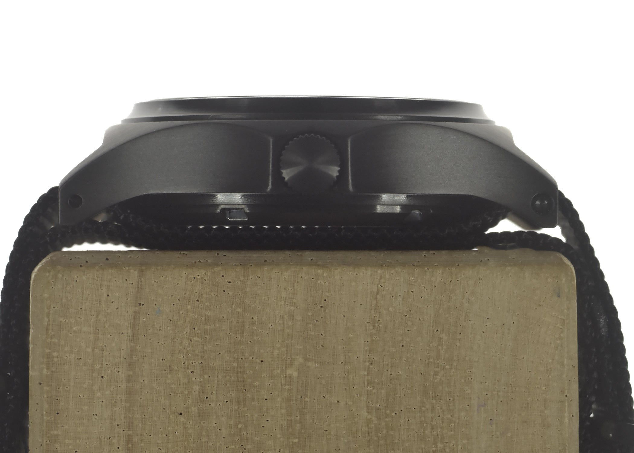 The special covert matt black non-reflective PVD finish used for this watch is often specified in military contracts for many special forces units as well as by anti-terrorist units and for various covert operations. In the PVD process, the steel is not black all the way through because the colour is created by a special chemical PVD plating process which is vastly superior to the painted finish used on some lower quality watches which can easily fade or rub off. This PVD process means that the colour of the steel is altered at a molecular level, therefore it will not deteriorate even during heavy usage although it can be damaged by a piece of metal being gouged out or if the case is worn down by really heavy abrasion against rocks or something similar although many customers have watches which we made in the 1990s and the PVD finish is still in excellent condition.