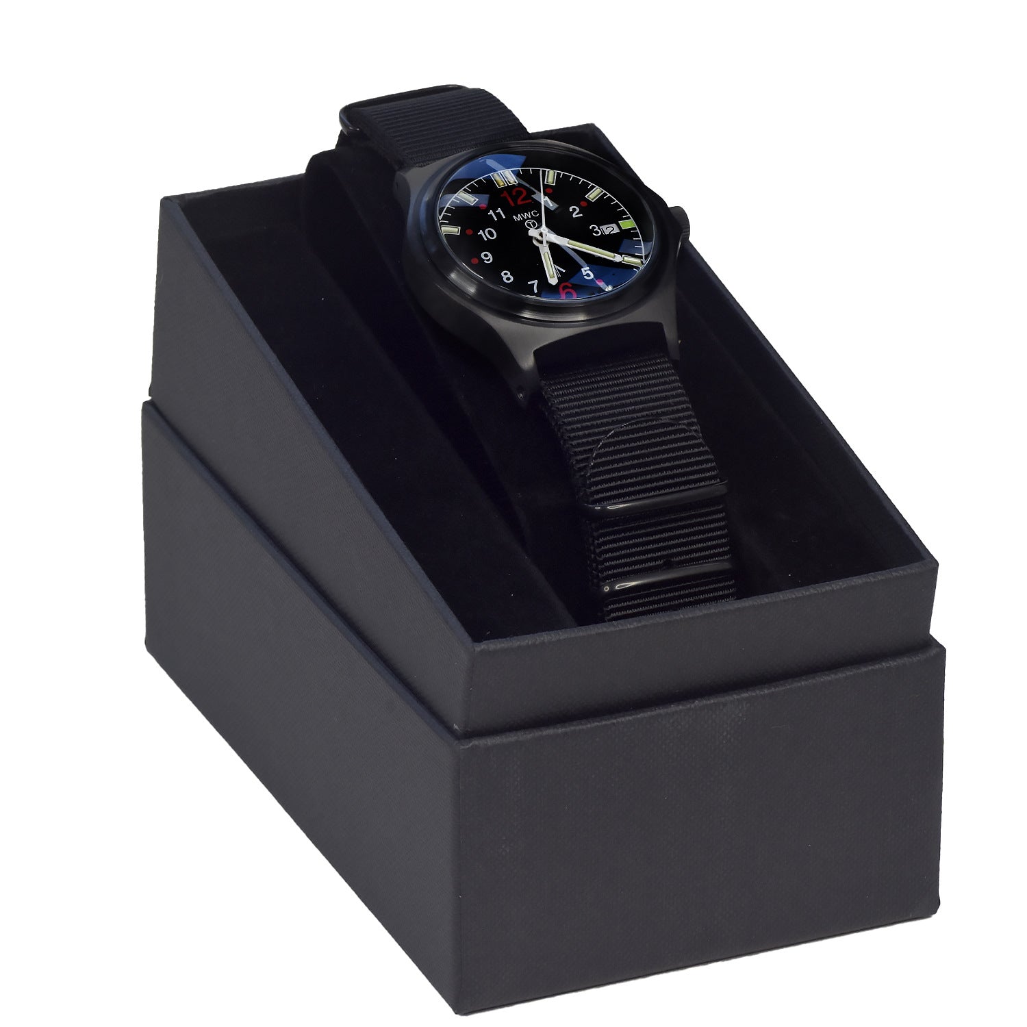 This self-luminous G10 model is a remake of a popular model which MWC made in the past. It has a heavy-duty stainless steel case with 100m (330ft) Water Resistance, screw-down crown, screw caseback and 10-year battery life.