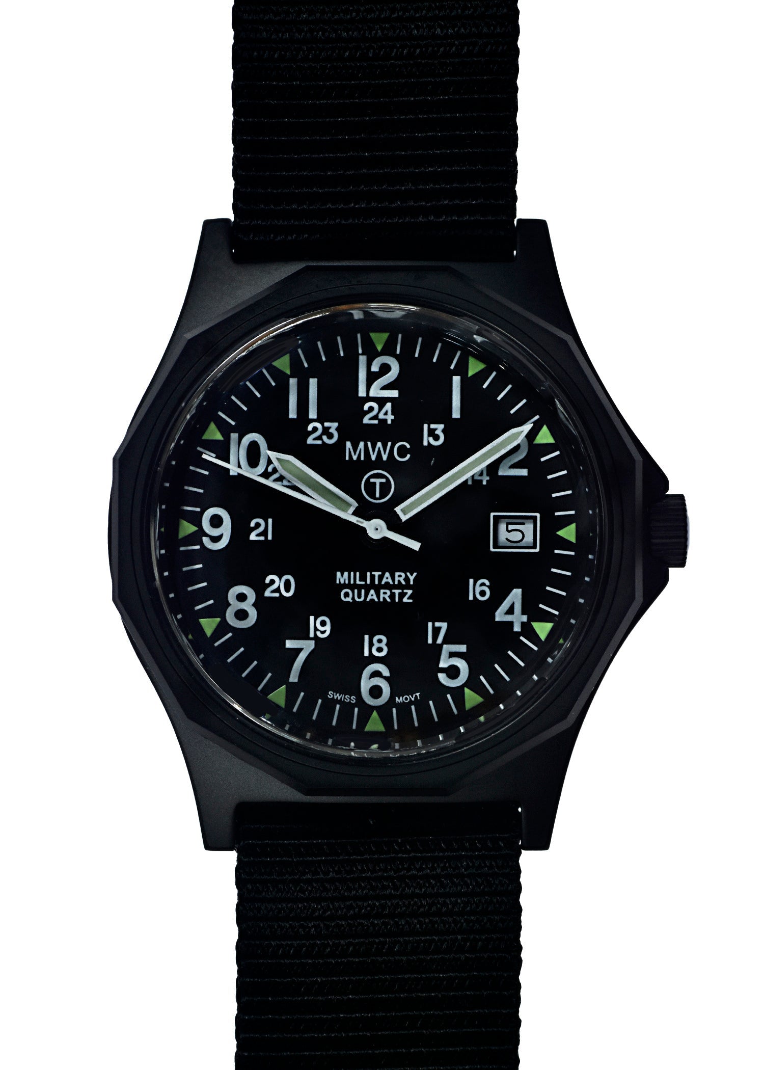 MWC G10 - Remake of the 1982 to 1999 Series Watch in Black PVD Steel with 12/24 NATO dial Pattern, Plexiglass Crystal and Battery Hatch