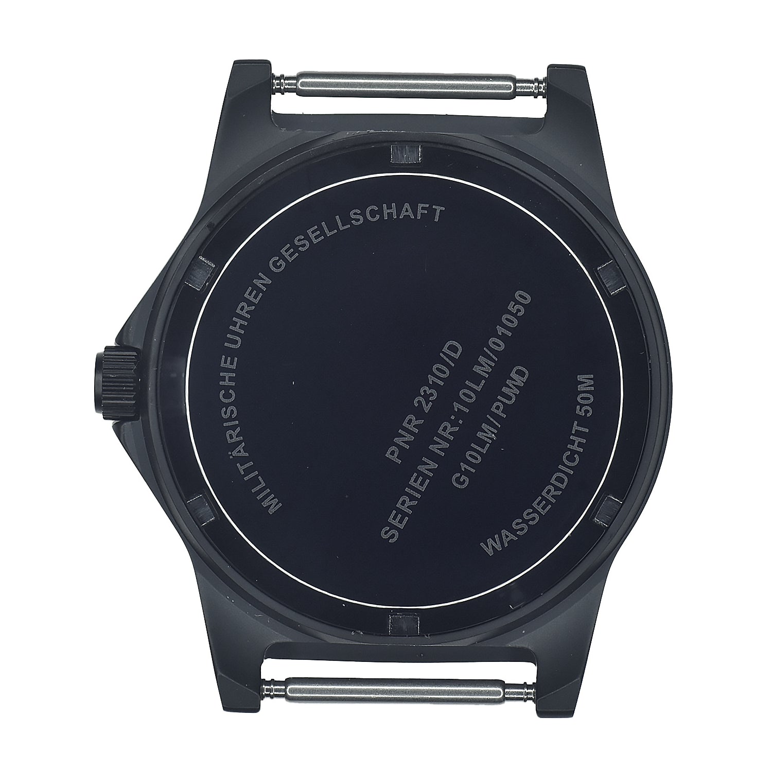 The G10LM is a contemporary General Service pattern field watch, designed with distinct specifications that set it apart from other similar models. Unlike many other manufacturers who use a push-on caseback, the G10LM features a screw-down caseback, enhancing its water resistance. Additionally, while other watches often use perspex or plexiglass crystals, MWC opts for actual glass, making the watch more scratch-resistant and providing a sleeker appearance.