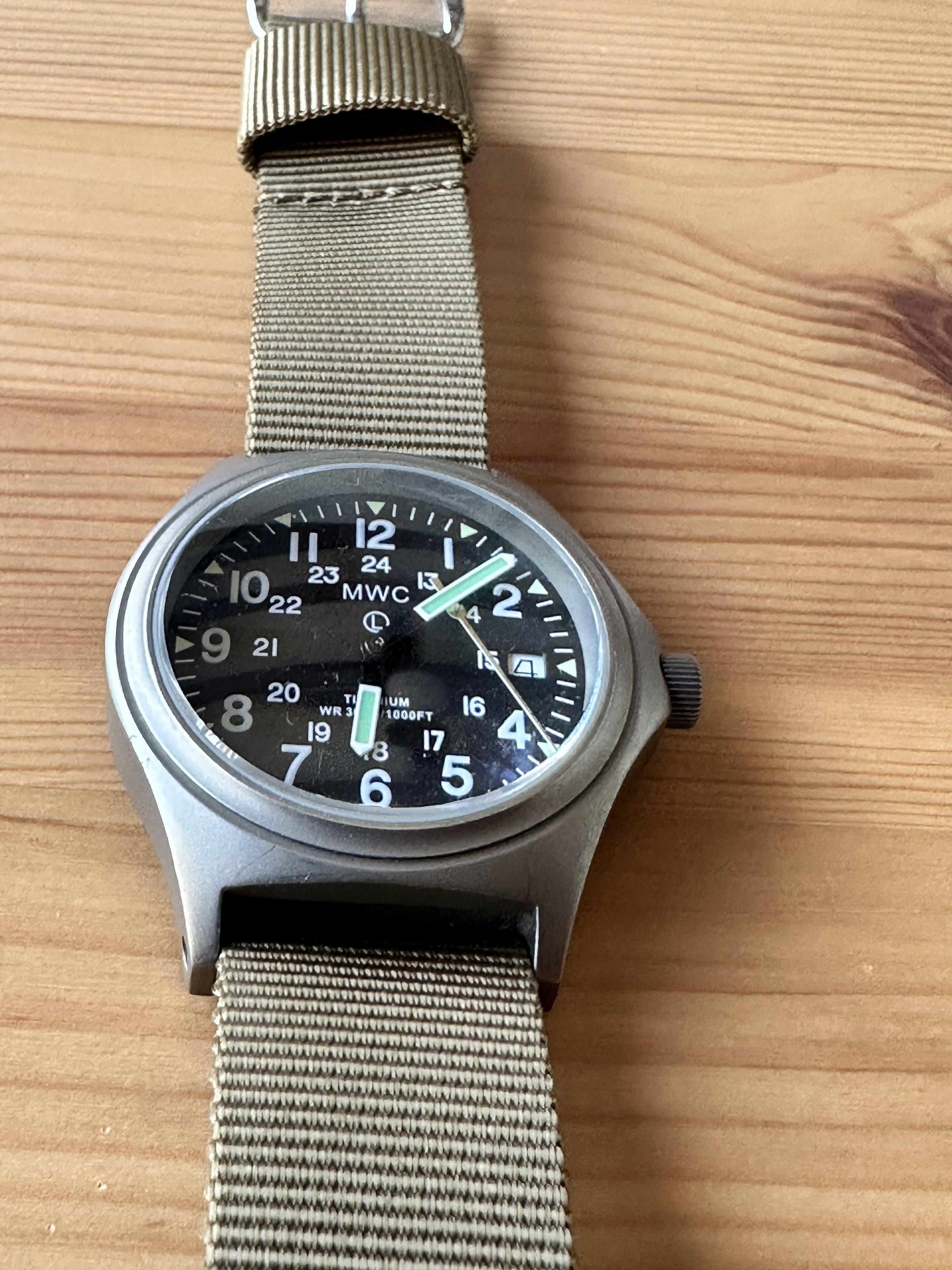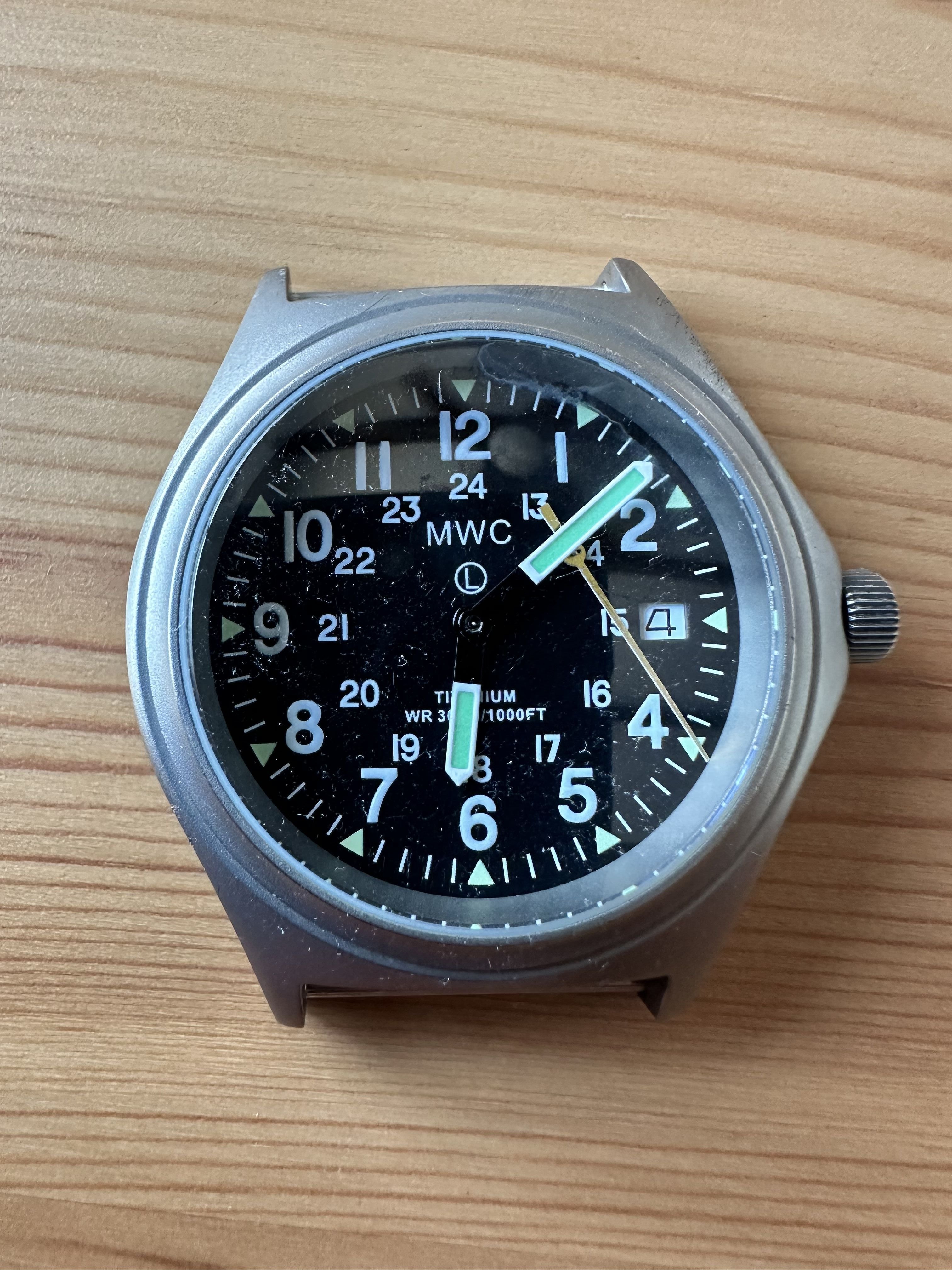 MWC Titanium General Service Watch, 300m Water Resistant, 10 Year Battery Life, Luminova, Sapphire Crystal and 12/24 Dial Format - Second Hand Needs Resetting