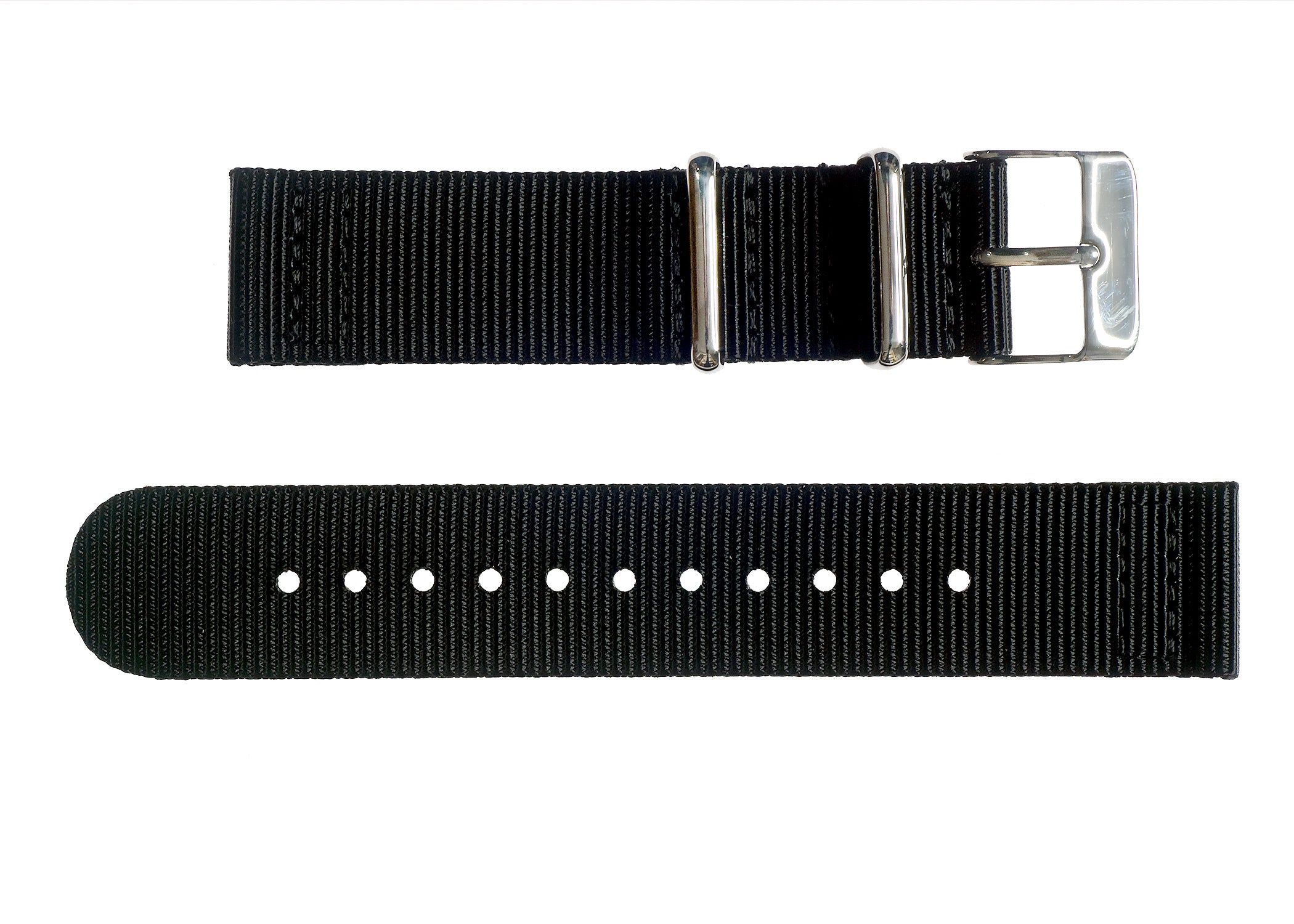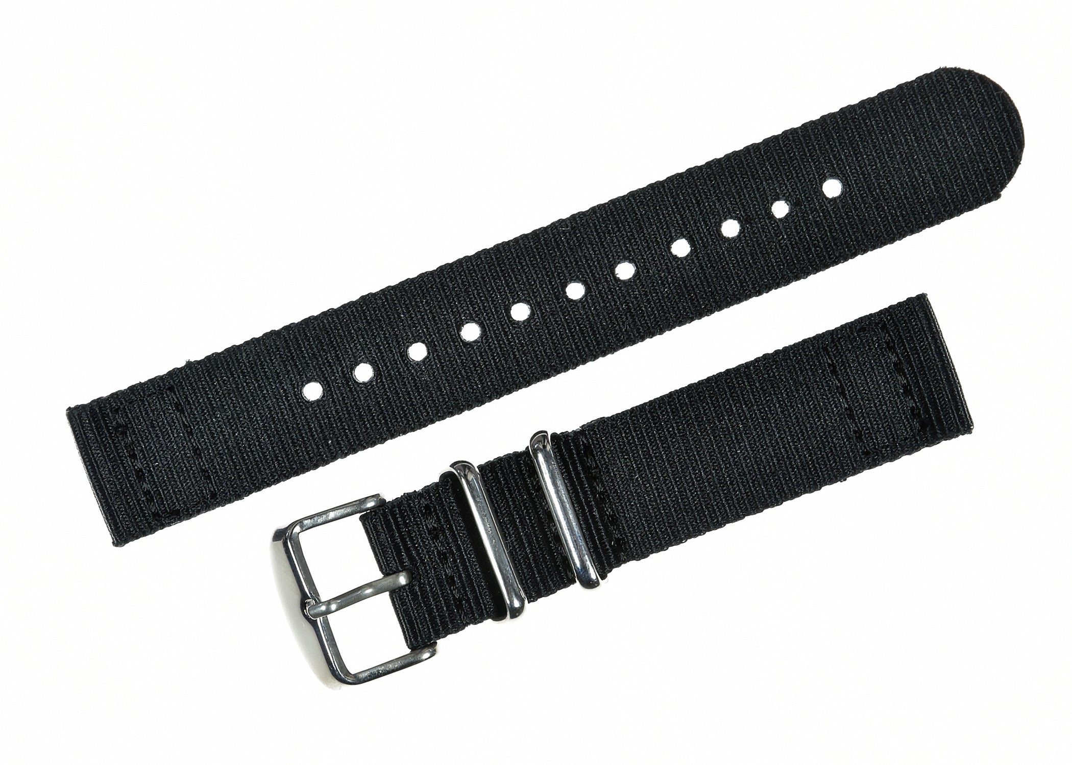 2 Piece 20mm Black NATO Military Watch Strap in Ballistic Nylon with Stainless Steel Fasteners