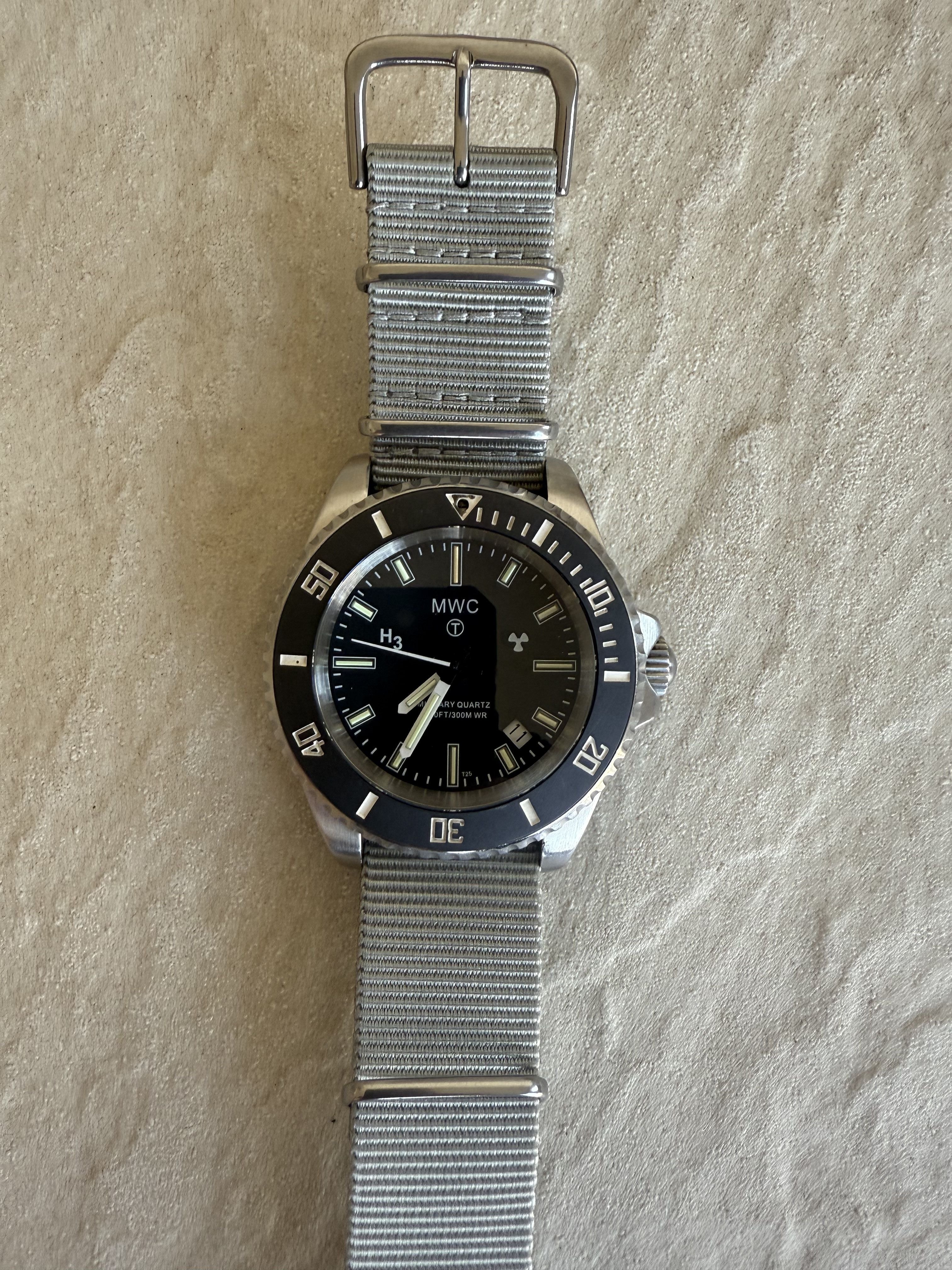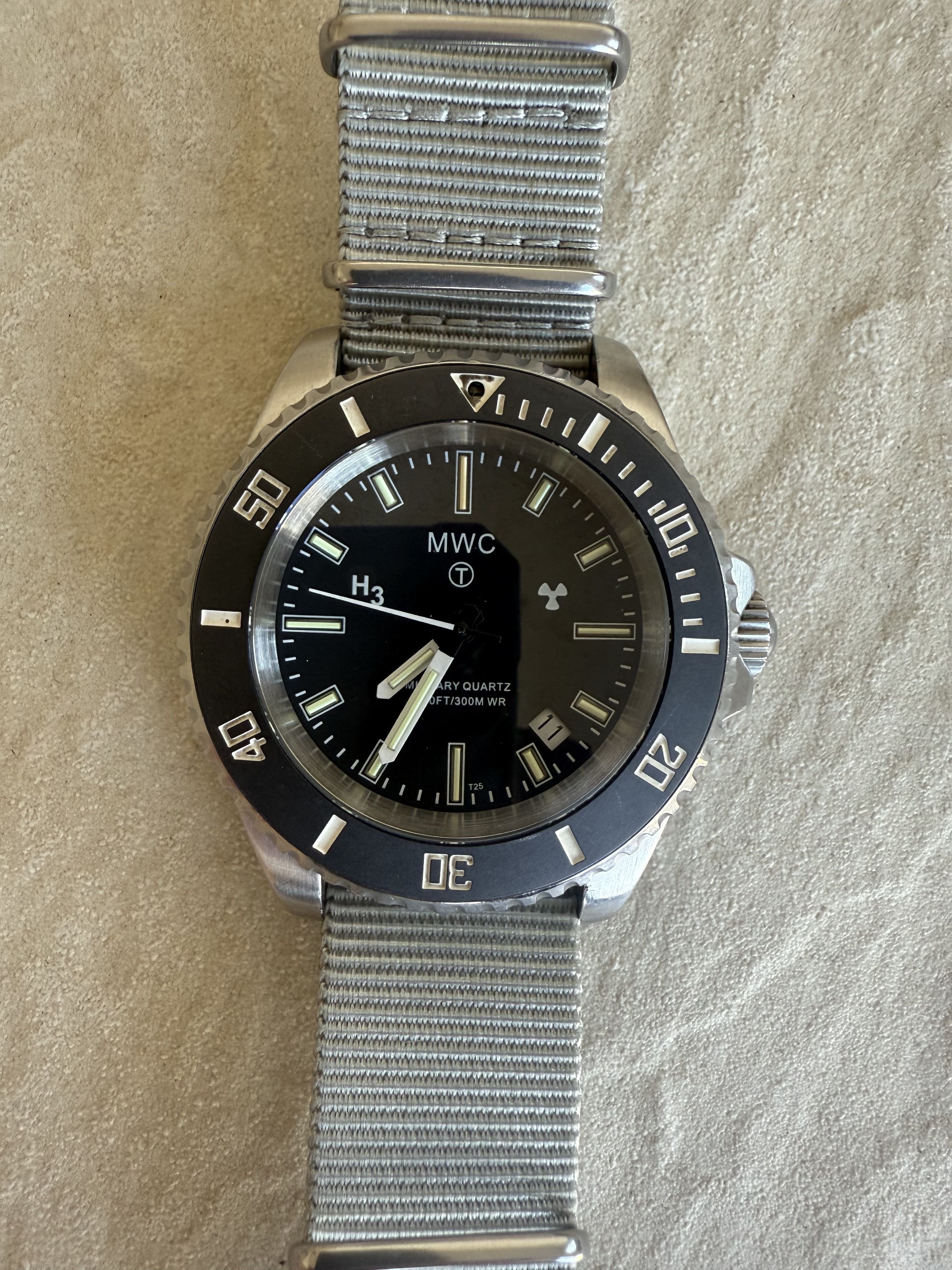 MWC 300m Military Quartz Divers Watch with Tritium GTLS and Sapphire Crystal on a NATO Strap - Missing PIP on Bezel and Not Running