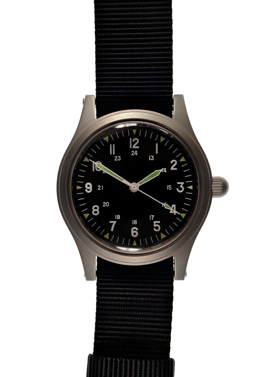 In January 2009, MWC was approached by a U.S. veterans association to explore the feasibility of recreating a watch that closely resembled the original models produced by Hamilton, Bulova, and Benrus during the Vietnam War. MWC was provided with samples and original specifications, resulting in a watch that closely mirrors the original, featuring a mechanical hand-wound movement with a hacking function.