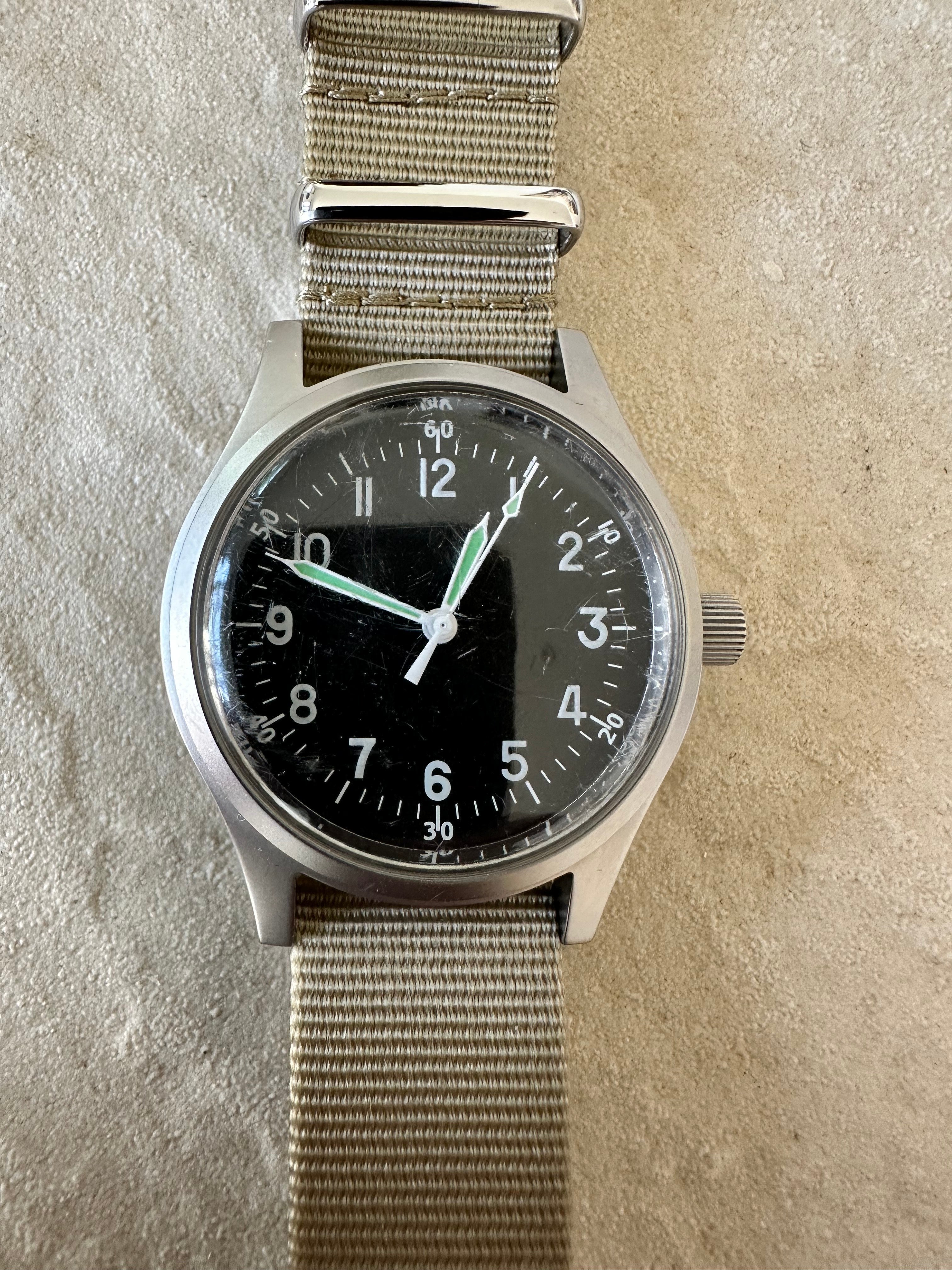 This particular recreation came into being because in January 2009 MWC was approached by a US veterans association who asked us to examine the viability of making a watch that was identical in appearance to the original watches which were made by Hamilton, Bulova and Benrus during the Vietnam war. They were sent samples of watches to examine and also the original specification sheets and the result was a watch which was very close to the original and used a high grade fully jewelled hand-wound movement, this watch was the GG-W-113 which we still make. As a result of making that watch, they were contacted again with a view to recreating this even earlier model because these are now almost impossible to find in good sound condition. The reason that finding one in good order is difficult is primarily that as outlined above most were made from 1943 onwards when resources were limited and hence cheap metal was used.