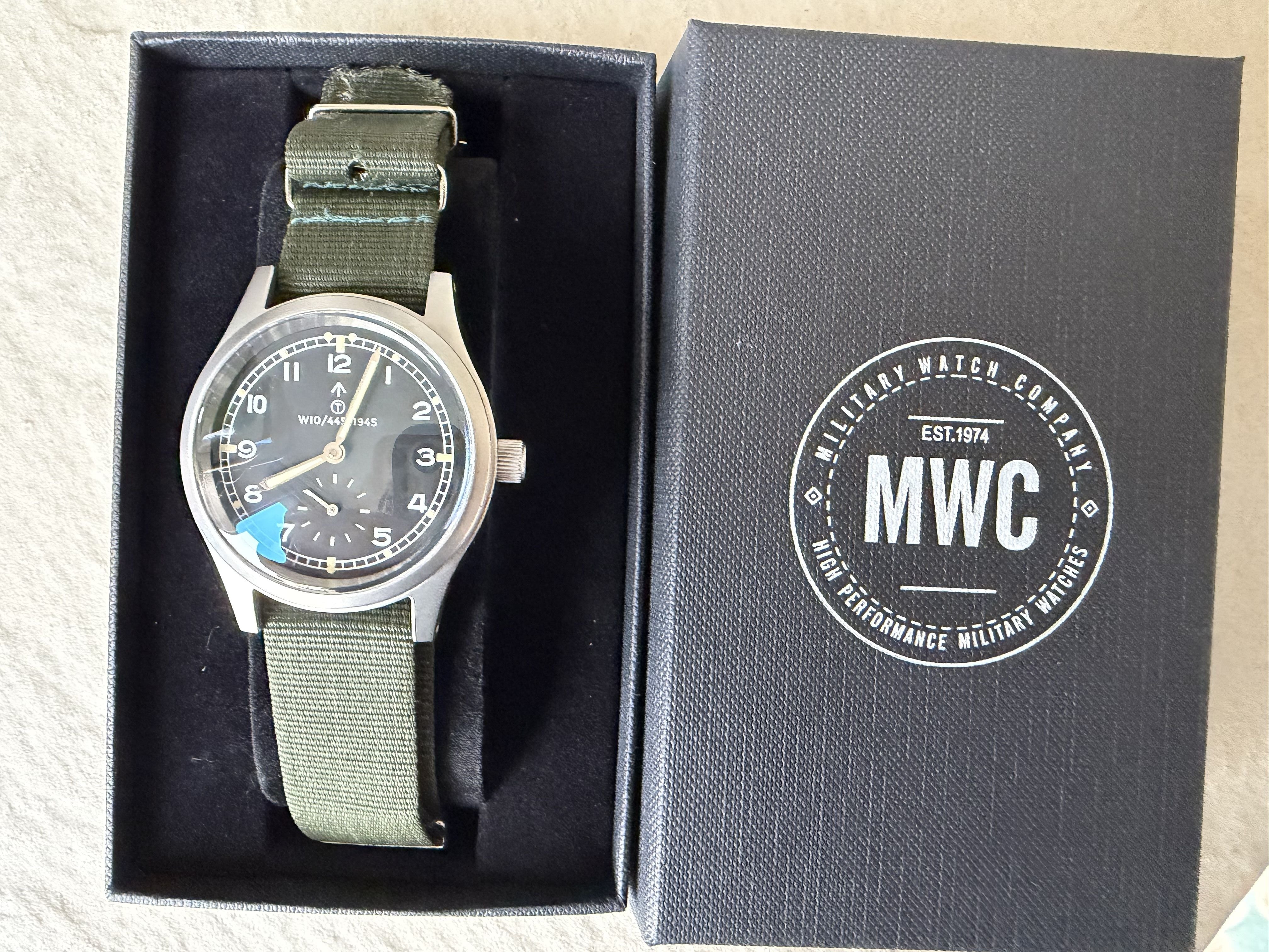 The final image on this listing shows the original "Dirty Dozen" — twelve companies that were commissioned to make watches for the British Ministry of Defence: Buren, Cyma, Eterna, Grana, Jaeger-LeCoultre, Lemania, Longines, IWC, Omega, Record, Timor, and Vertex. While MWC did not exist at the time (founded in 1974), this model pays tribute to those original designs with utmost respect and authenticity.