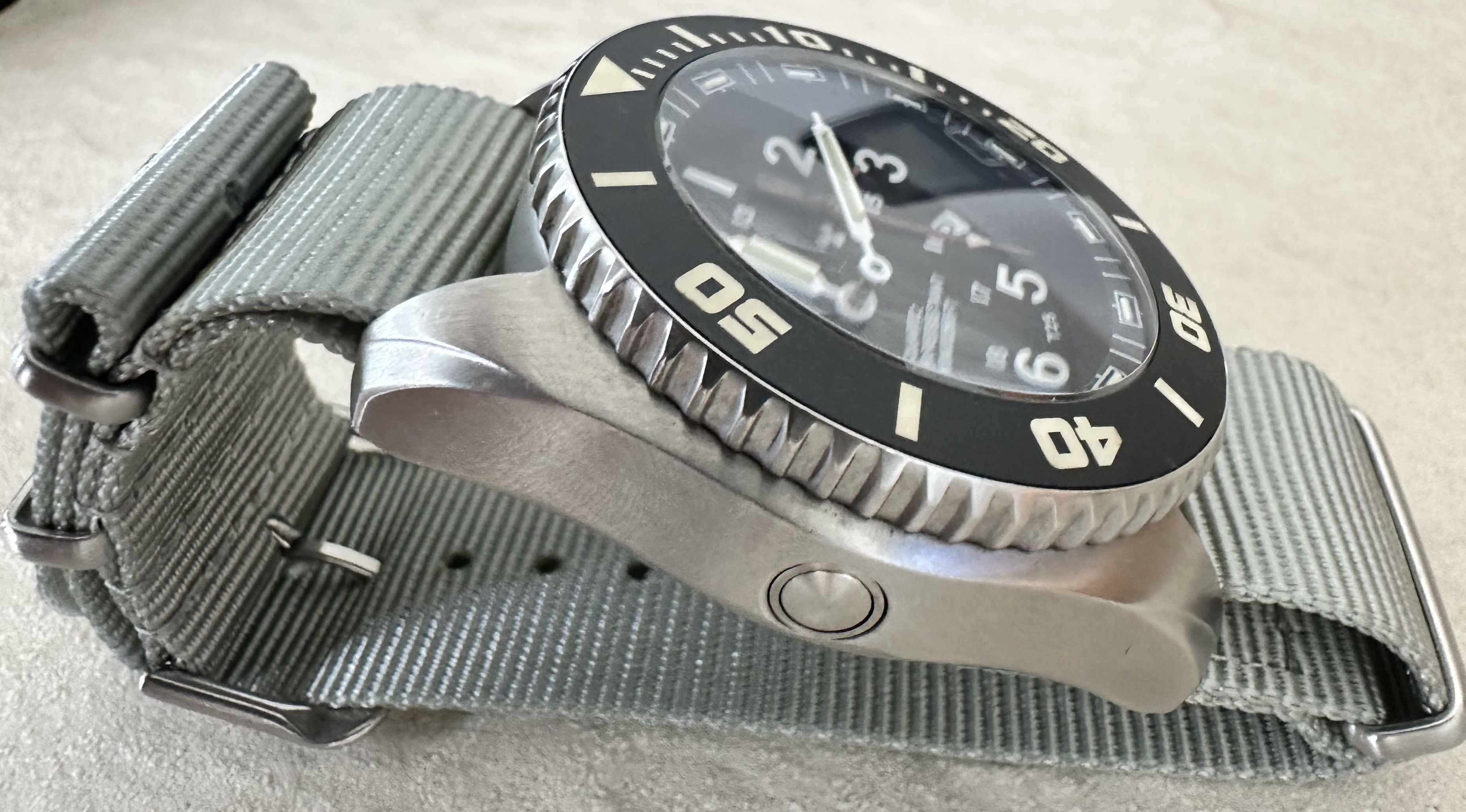 All MWC 100ATM models are fitted with a helium escape valve, people often ask us how helium gets into a dive watch in the first place and the answer is very simple, essentially a helium molecule is among the smallest of all molecules. What this means is because they are so small even though the seals are working fine to keep water out the helium molecules can still get through and enter the watch even though other gases and water cannot.