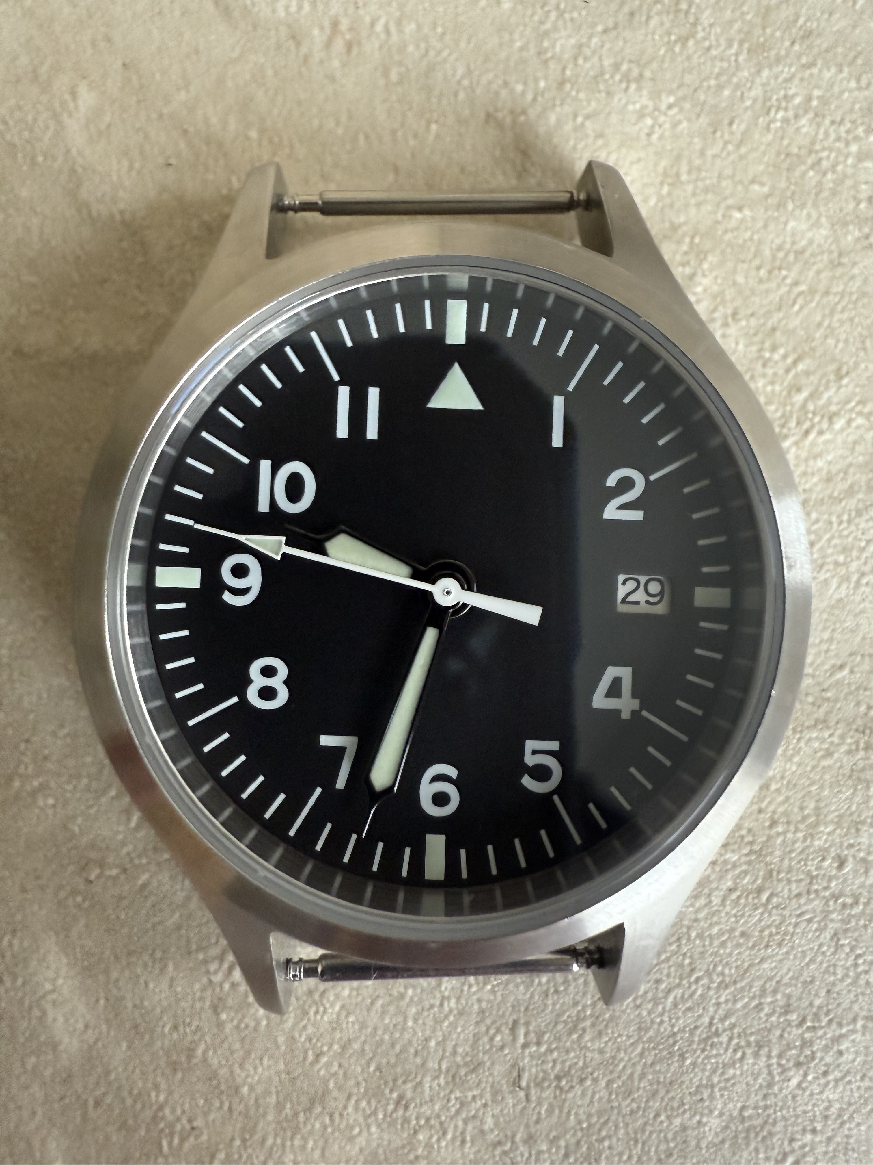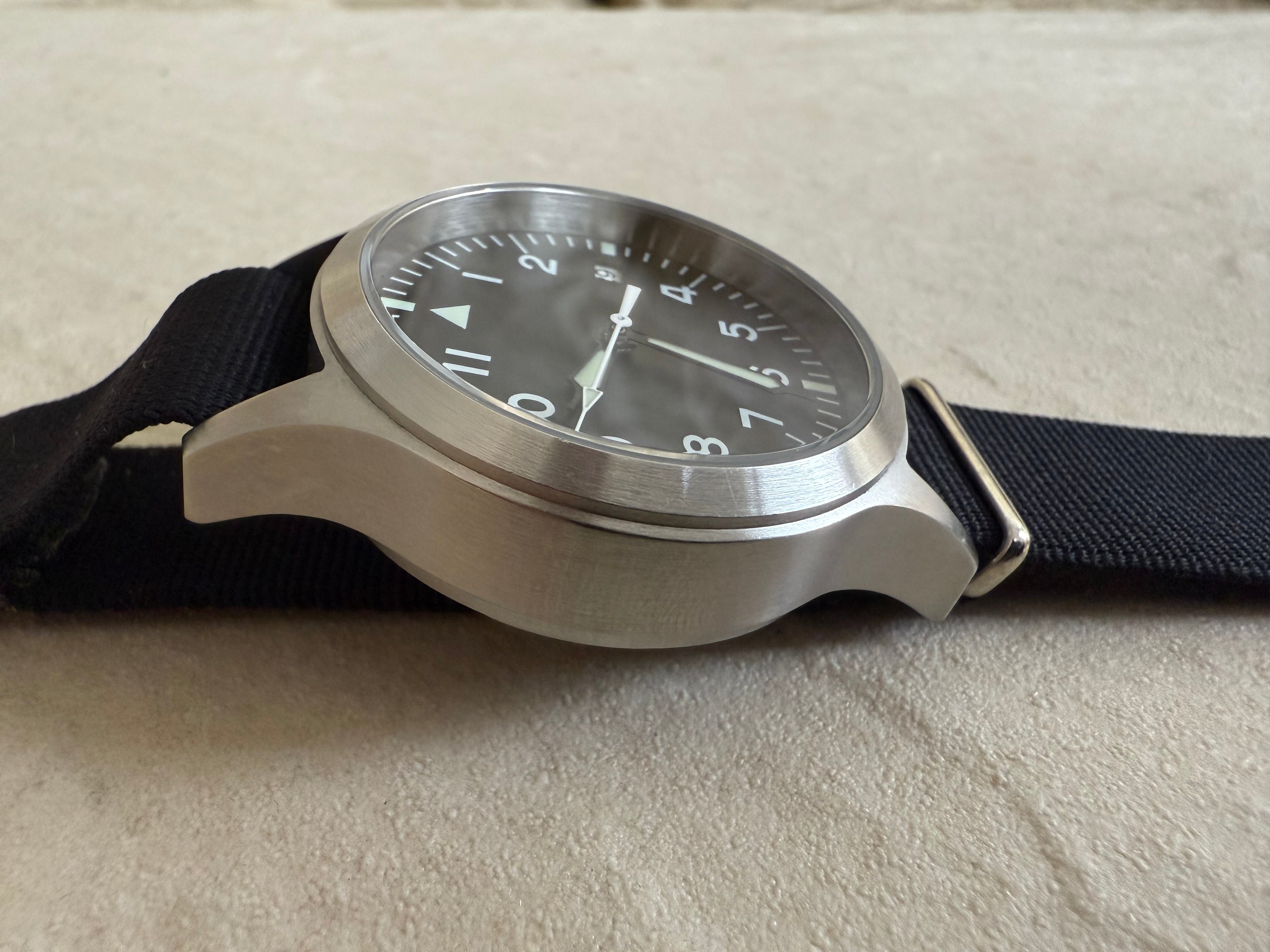 Today, budget constraints mean that military forces rarely invest in watches of this caliber. In the past, military suppliers included Rolex, IWC, Omega, Longines, and other renowned brands. The MKIII was created for those who desire a military-style watch that is built to a high standard. It features a high-performance movement and a brushed stainless steel case designed in the 1950/60s style, manufactured and hand-finished in Zurich. The model has been recently upgraded with a scratch- and shatter-resistant sapphire crystal with a non-reflective coating.