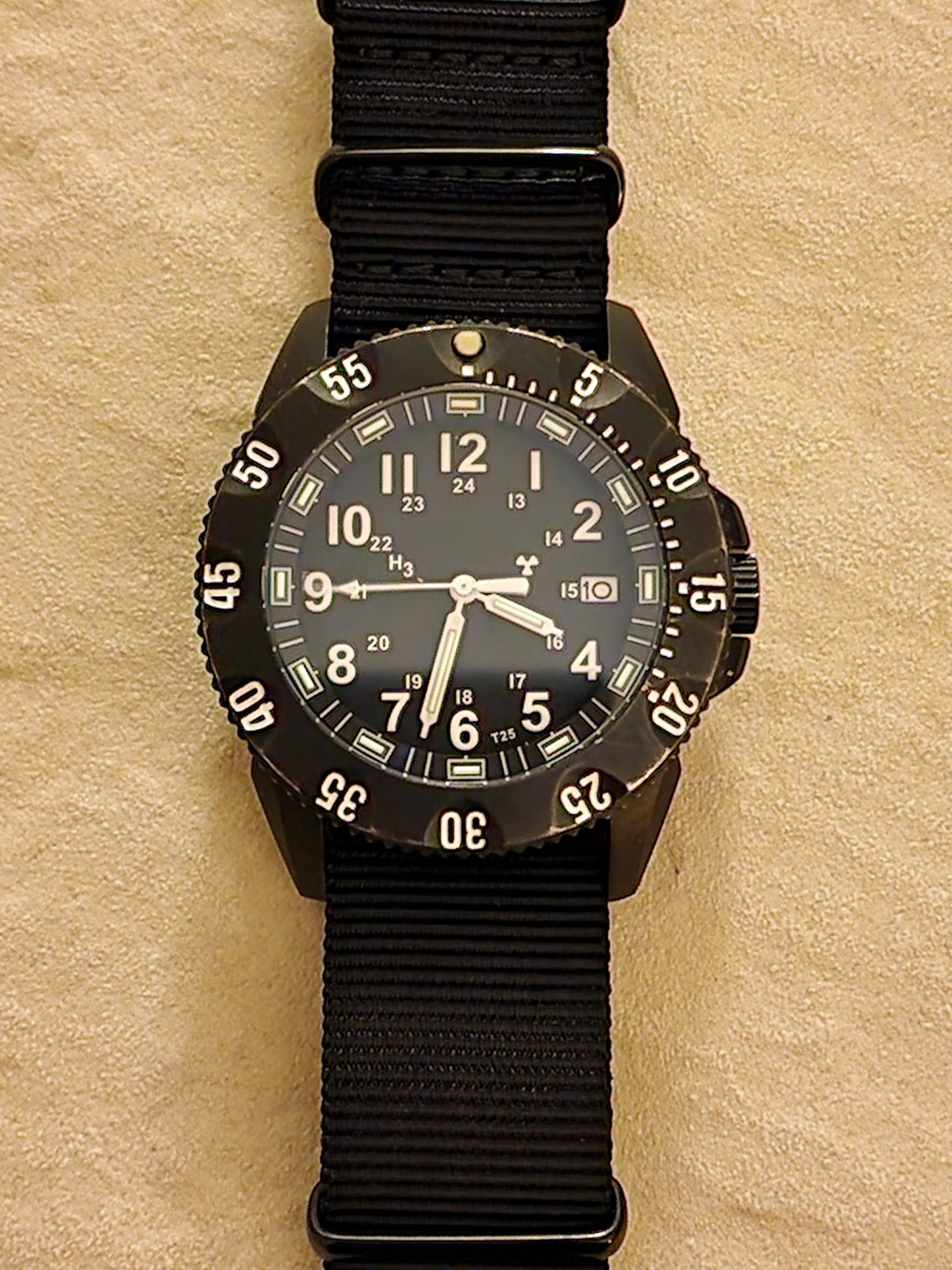MWC P656 Titanium Tactical Series Watch with GTLS Tritium, 24 Jewel Automatic Movement and Sapphire Crystal (Date Version) - Running Fine but Needs Adjustment to Hand Setting
