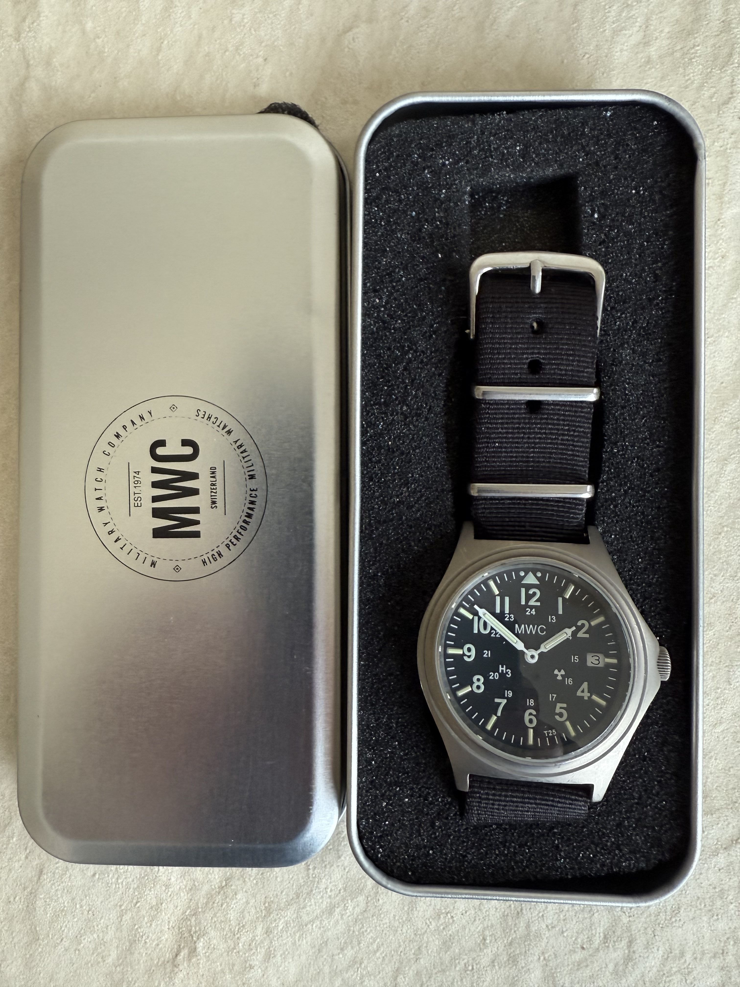 MWC developed these watches for a government contract, where the requirement was to withstand long-term storage without the risk of dead batteries. To address this, MWC selected the Swiss Ronda 715li movement, which offers a 10-year battery life, ensuring that it is always ready for deployment.