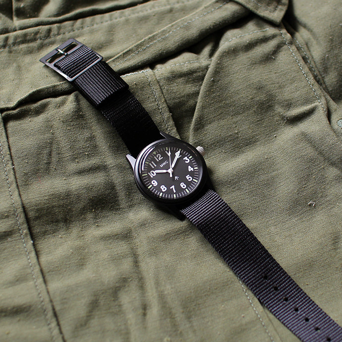 MWC Classic 1960s/70s Matt Black European Pattern Military Watch Webbing Strap